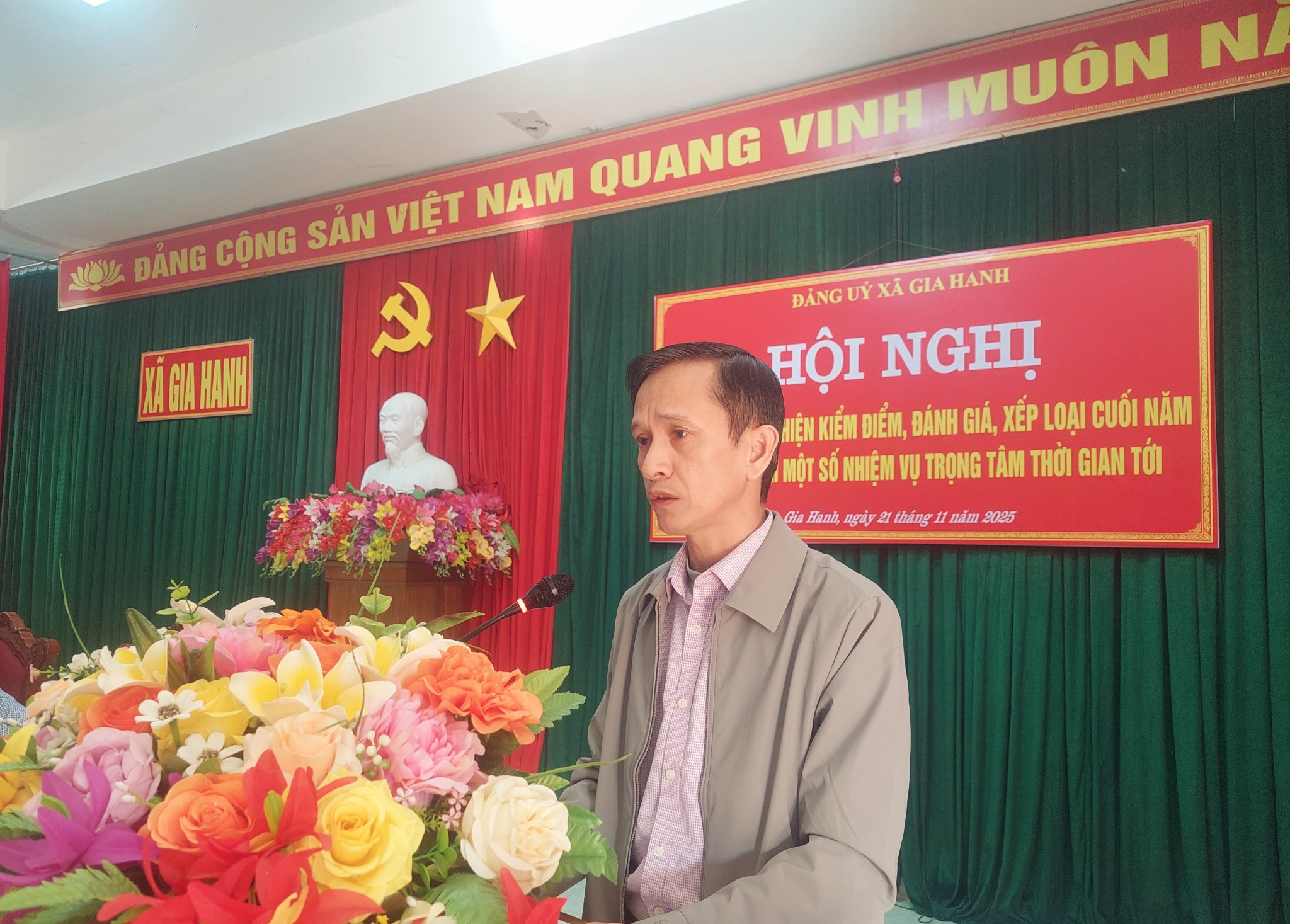 Tại hội nghị, hơn 90 đại biểu là Bí thư, Phó Bí thư các đảng bộ, chi bộ cơ sở, chi bộ trực thuộc đã được Ban Thường vụ Đảng ủy xã hướng dẫn, quán triệt, triển khai công tác kiểm điểm, đánh giá, xếp loại chất lượng đối với tập thể, cá nhân trong hệ thống chính trị năm 2025; Quán triệt các Chỉ thị của Ban Thường vụ Đảng ủy về việc tăng cường lãnh đạo, chỉ đạo quản lý đất đai, tài nguyên, môi trường trên địa bàn xã Gia Hanh và Lãnh đạo Ủy ban nhân xã triển khai một số nhiệm vụ trọng tâm trong thời gian tới. Các đại biểu tham dự hội nghị thảo luận các nội dung liên quan đến công tác kiểm điểm, đánh giá, xếp loại cá nhân, tập thể năm 2025; đề nghị cần khắc phục sửa chữa các tuyến đường, hệ thống mương, các hạng mục công trình của các trường học bị hư hỏng sau bão lũ…