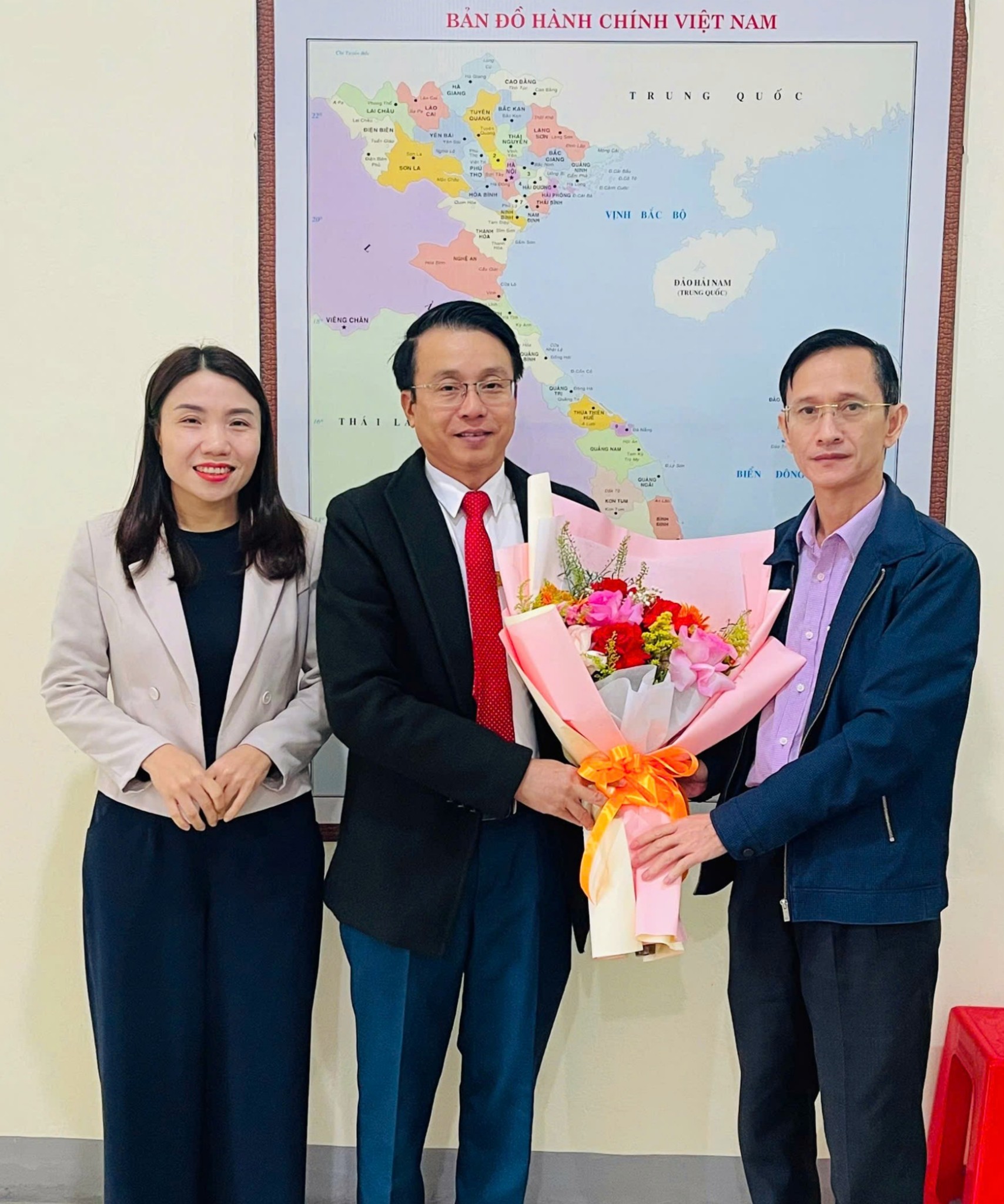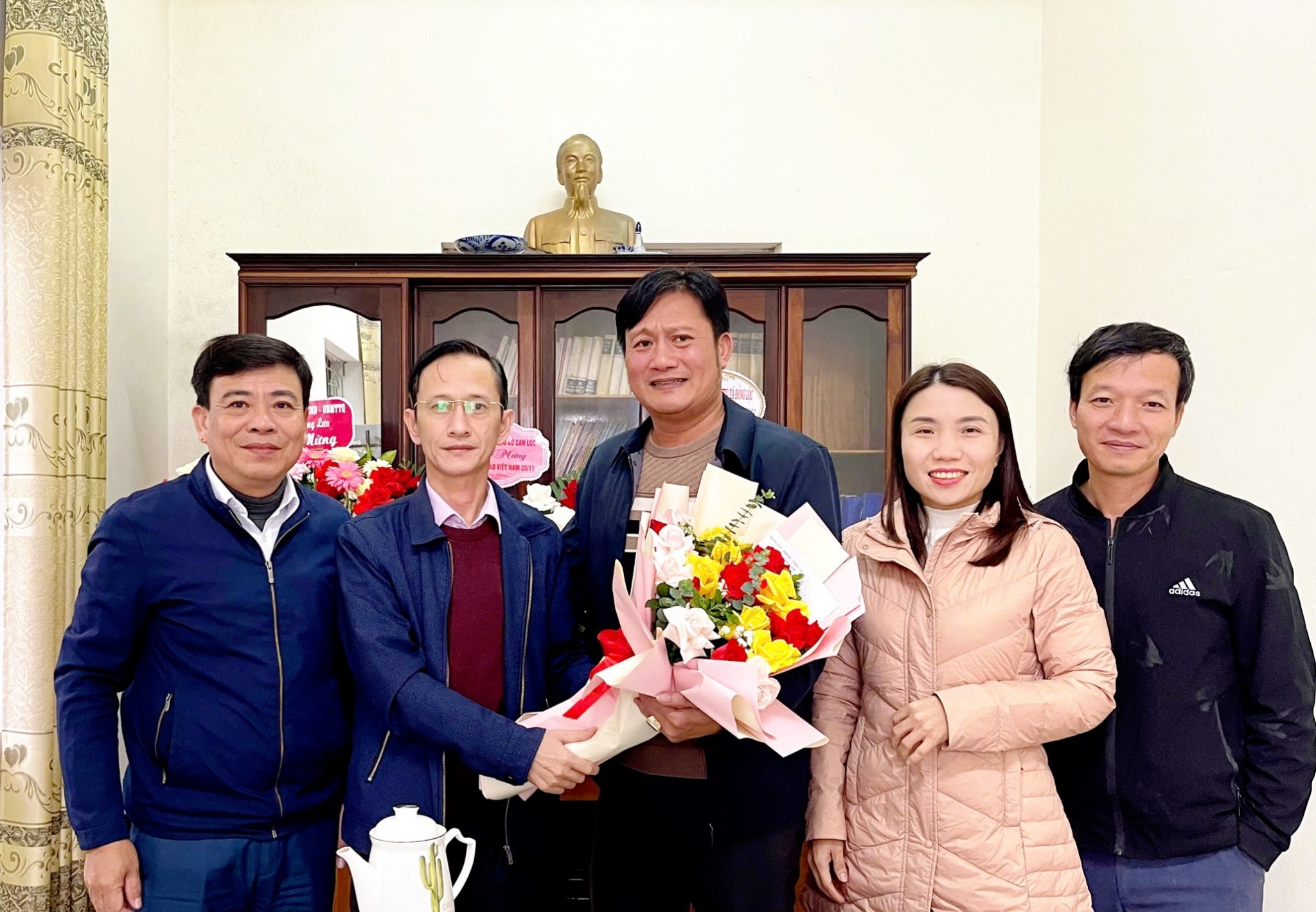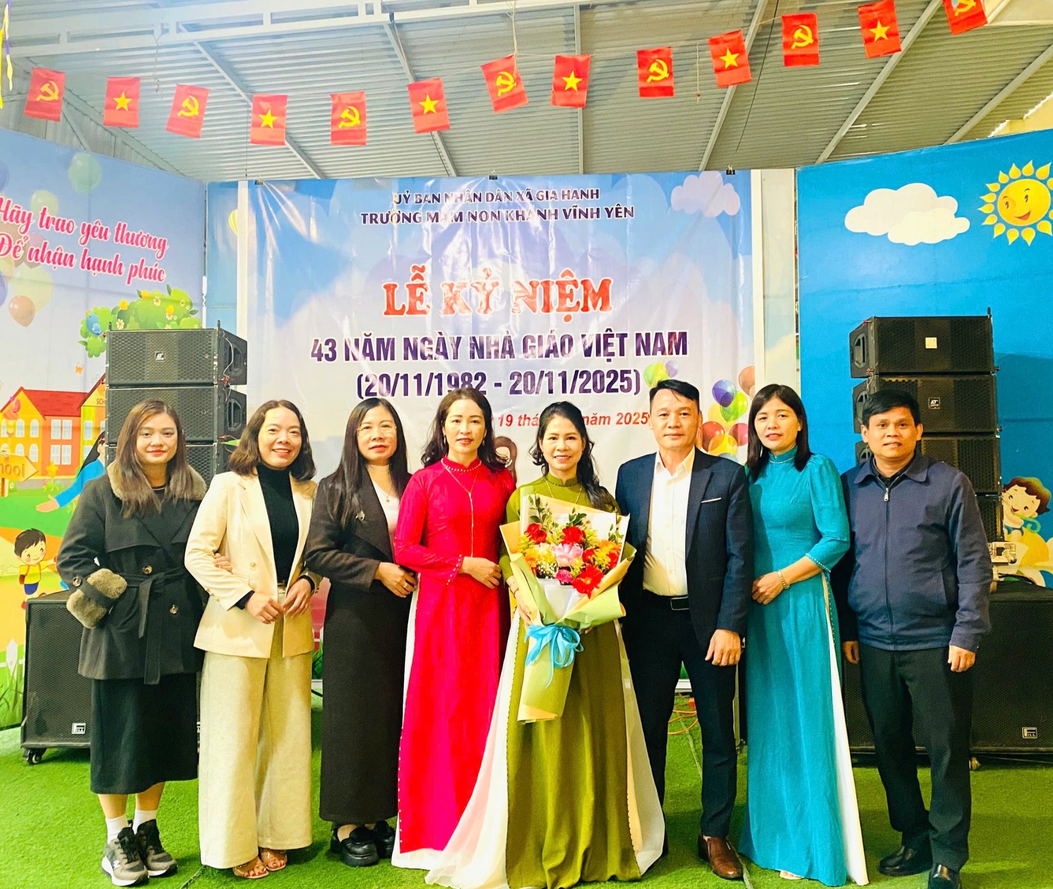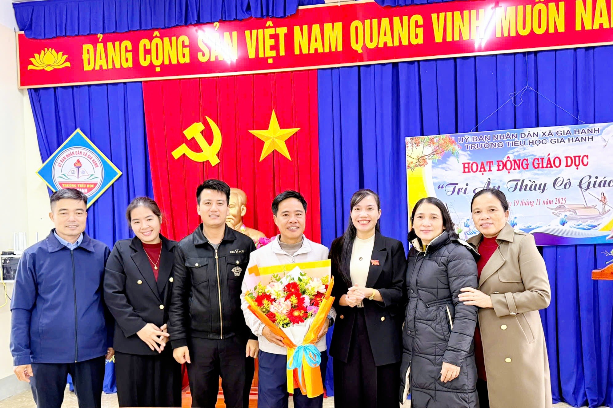 Những bó hoa tươi thắm cùng lời chúc mừng chân thành được trao gửi các thầy giáo, cô giáo như lời cảm ơn sâu sắc của chính quyền địa phương đối với những cống hiến bền bỉ vì sự nghiệp gieo chữ, trồng người.