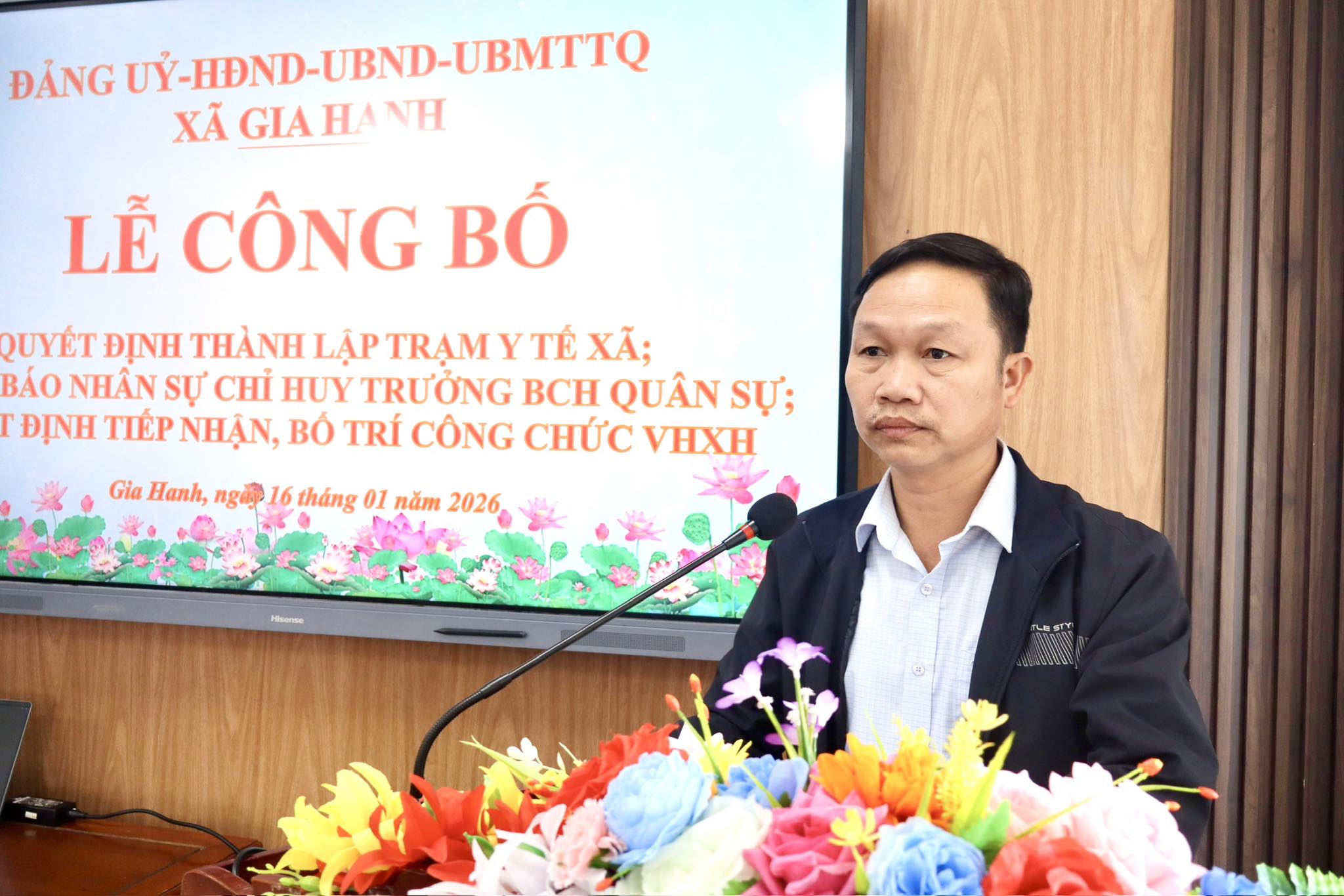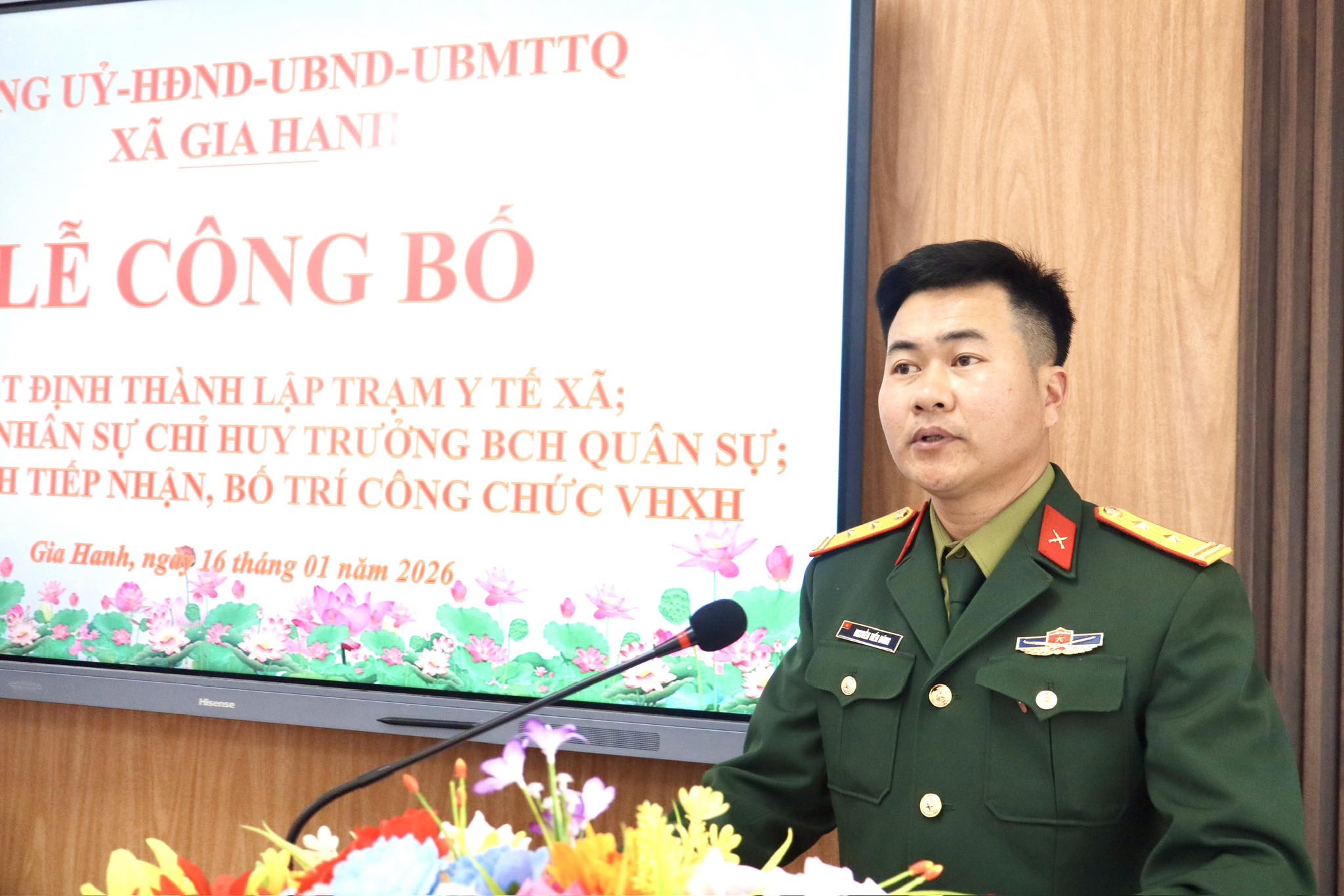 Công bố quyết định của về việc miễn nhiệm chức vụ Chỉ huy trưởng, Phó Chỉ huy trưởng, Chính trị viên, Phó Trợ lý Ban CHQS cấp xã và thông báo nhân sự Trung tá Nguyễn Tiến Dũng, Đội trưởng Đội sản xuất 3, Đoàn Kinh tế - Quốc phòng 92, Quân khu 4 giữ chức Chỉ huy trưởng Ban CHQS xã Gia Hanh.