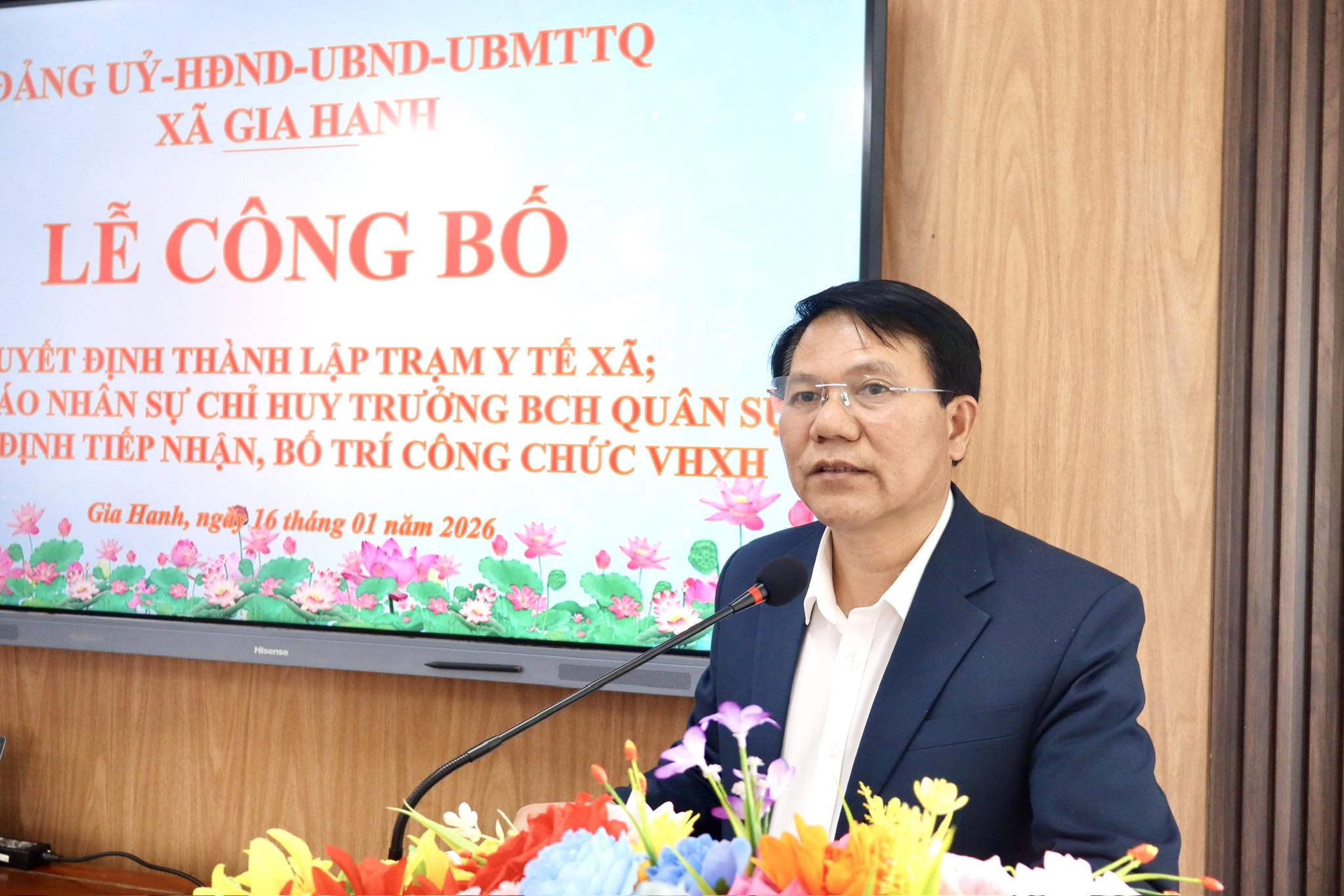 Phát biểu giao nhiệm vụ, đồng chí Nguyễn Duy Cường – Chủ tịch UBND xã đề nghị Ban CHQS xã, Trạm Y tế xã và các cán bộ, công chức, viên chức được bổ nhiệm, phân công nhiệm vụ giữ vững sự đoàn kết, tiếp tục phát huy hơn nữa năng lực, kinh nghiệm, tâm huyết để có nhiều đóng góp cho nhiệm vụ quân sự, sự nghiệp y tế, văn hóa – xã hội, góp phần xây dựng xã Gia Hanh ngày càng phát triển.