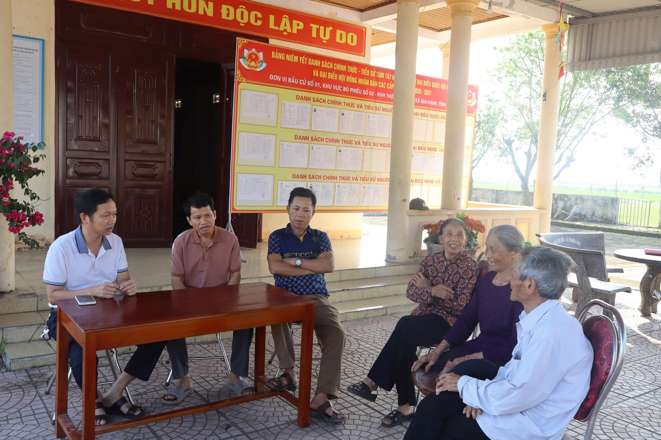 Người dân thôn Phong Sơn được cán bộ xã, cán bộ thôn trực tiếp tuyên truyền về bầu cử đại biểu Quốc hội khóa XVI và HĐND các cấp, nhiệm kỳ 2026 - 2031.