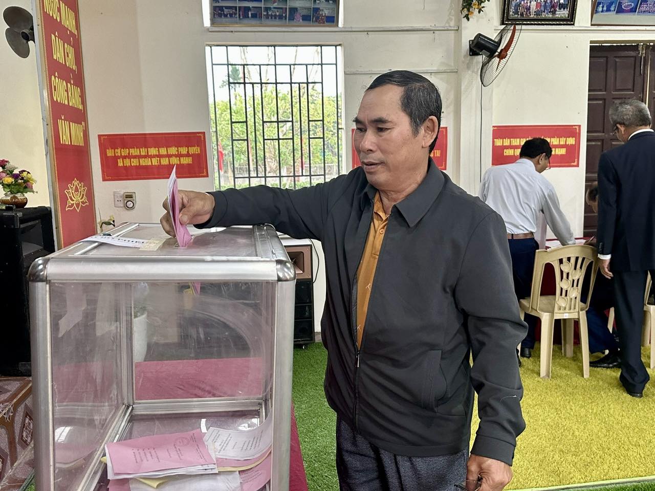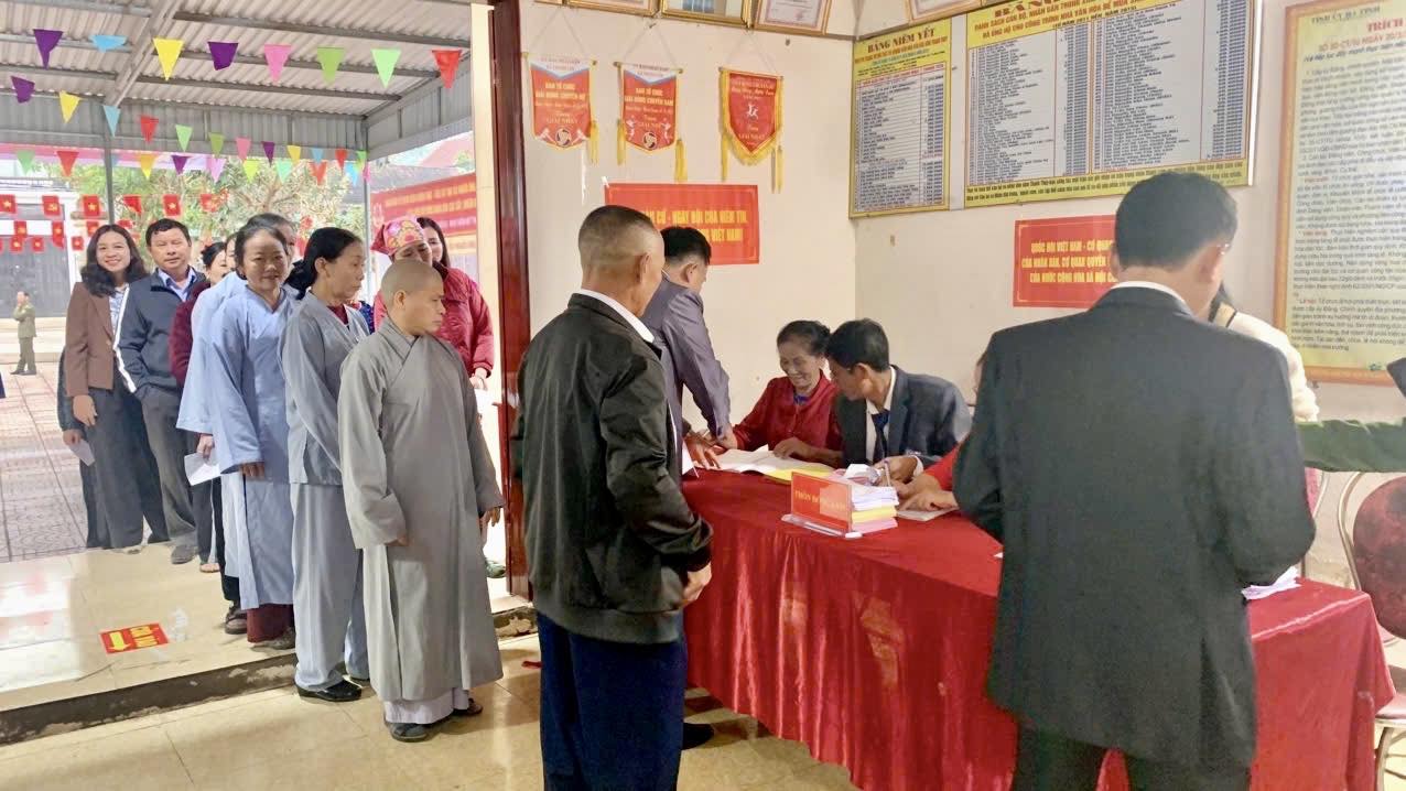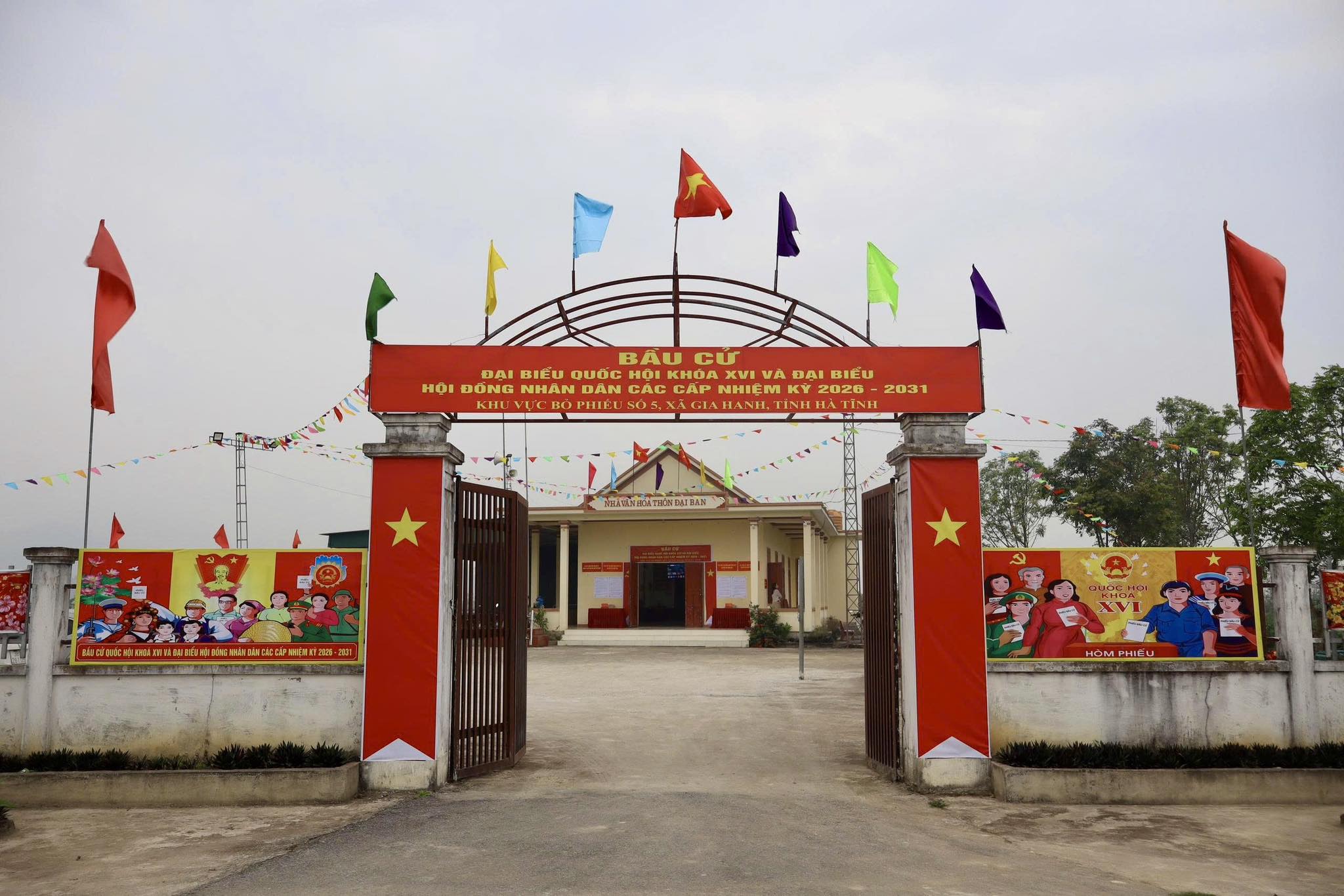 Các khu vực bỏ phiếu được trang trí trang trọng với cờ hoa, băng rôn, khẩu hiệu, pano, áp phích tuyên truyền về bầu cử, tạo nên không khí phấn khởi, trang nghiêm và rộn ràng của ngày hội lớn.