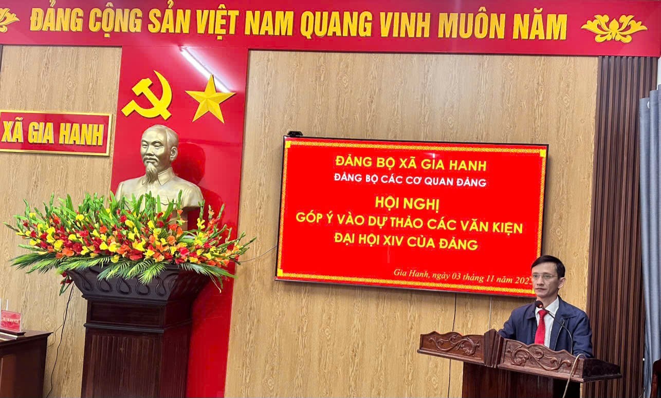 Tại buổi lễ, Đảng bộ các cơ quan Đảng xã Gia Hanh đã triển khai việc lấy ý kiến góp ý Dự thảo các văn kiện Đại hội đại biểu toàn quốc lần thứ XIV của Đảng. Đây là đợt sinh hoạt chính trị quan trọng, thể hiện tinh thần dân chủ, trách nhiệm và tâm huyết của mỗi cán bộ, đảng viên trong việc đóng góp xây dựng đường lối, chủ trương của Đảng trong giai đoạn phát triển mới.