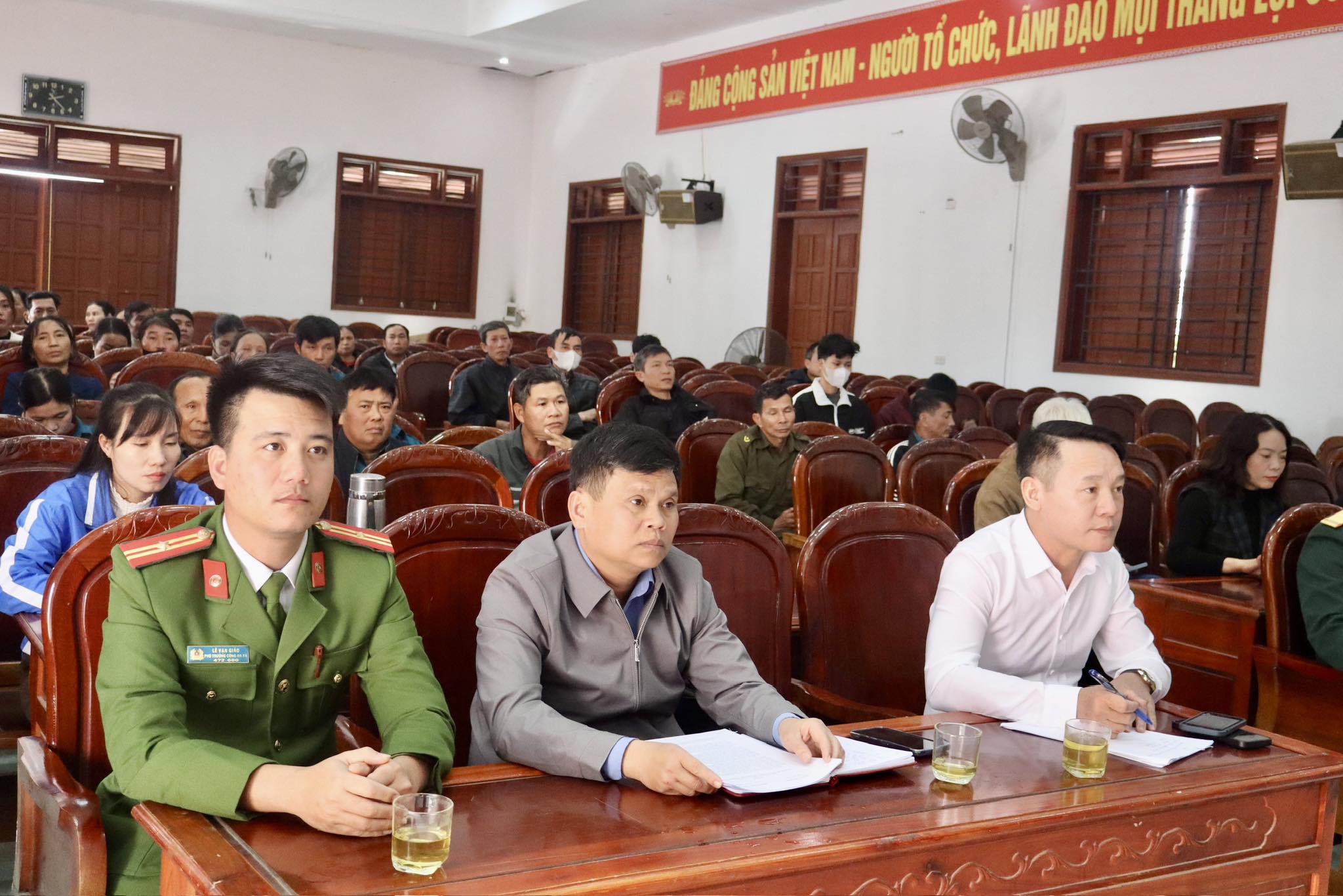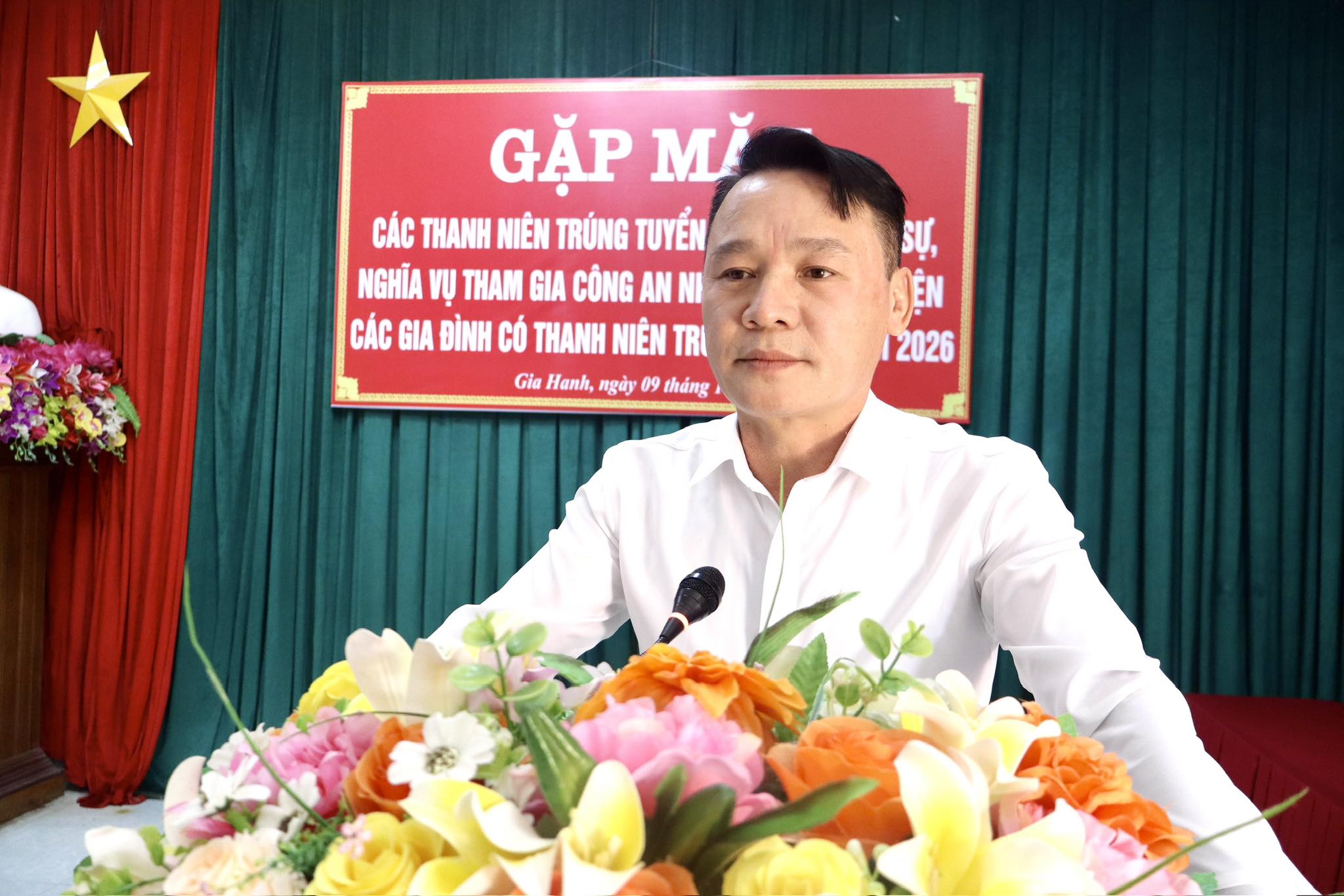 Tại buổi gặp mặt, Chủ tịch Hội Cựu Chiến binh, Bí thư Đoàn Thanh niên xã nói chuyện truyền thống và động viên thanh niên chuẩn bị lên đường nhập ngũ, thực hiện nghĩa vụ tham gia Công an nhân dân.