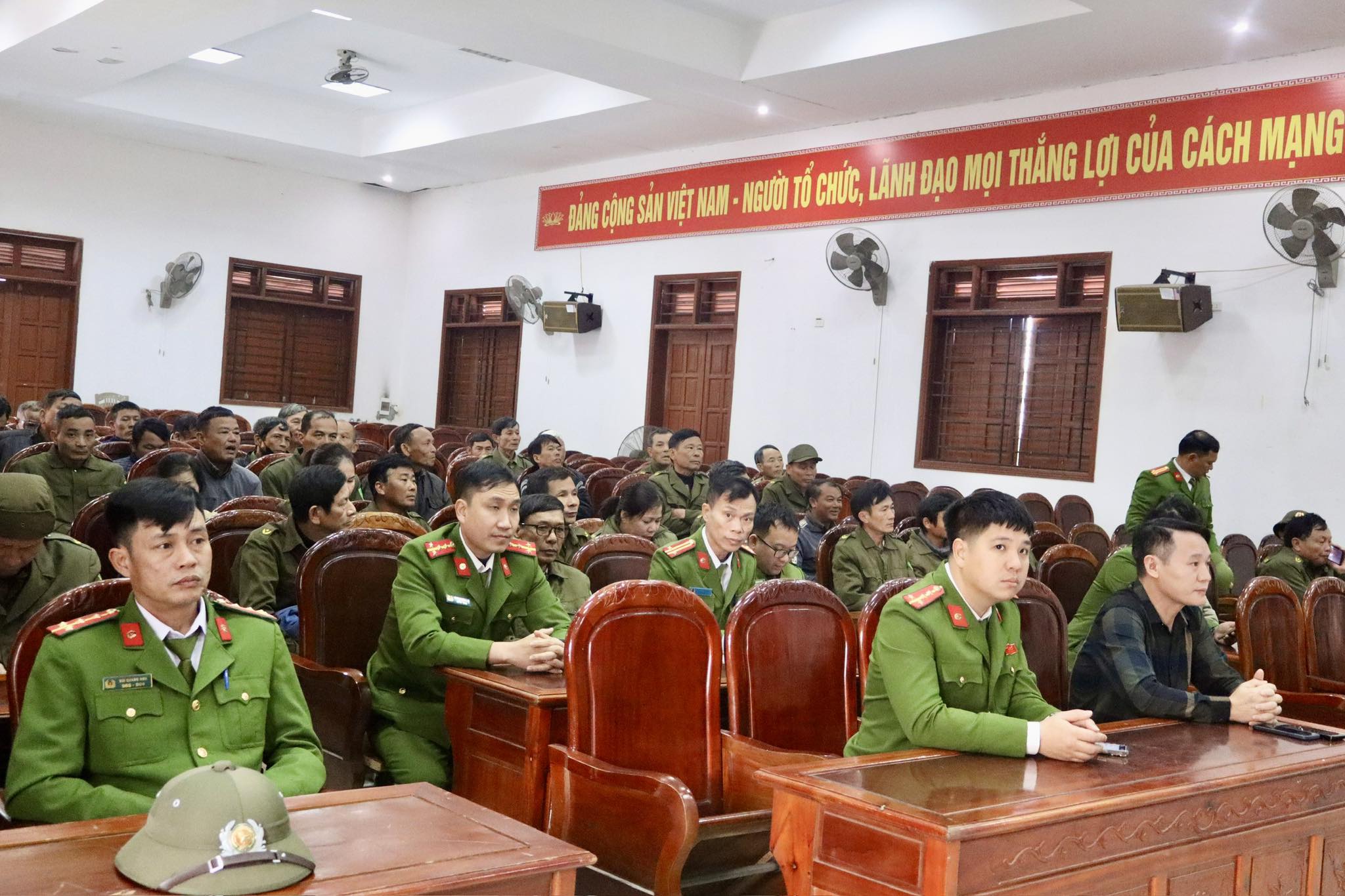 Đại úy Nguyễn Trung Thông - Trưởng Công an xã giao nhiệm vụ cho các lực lượng.