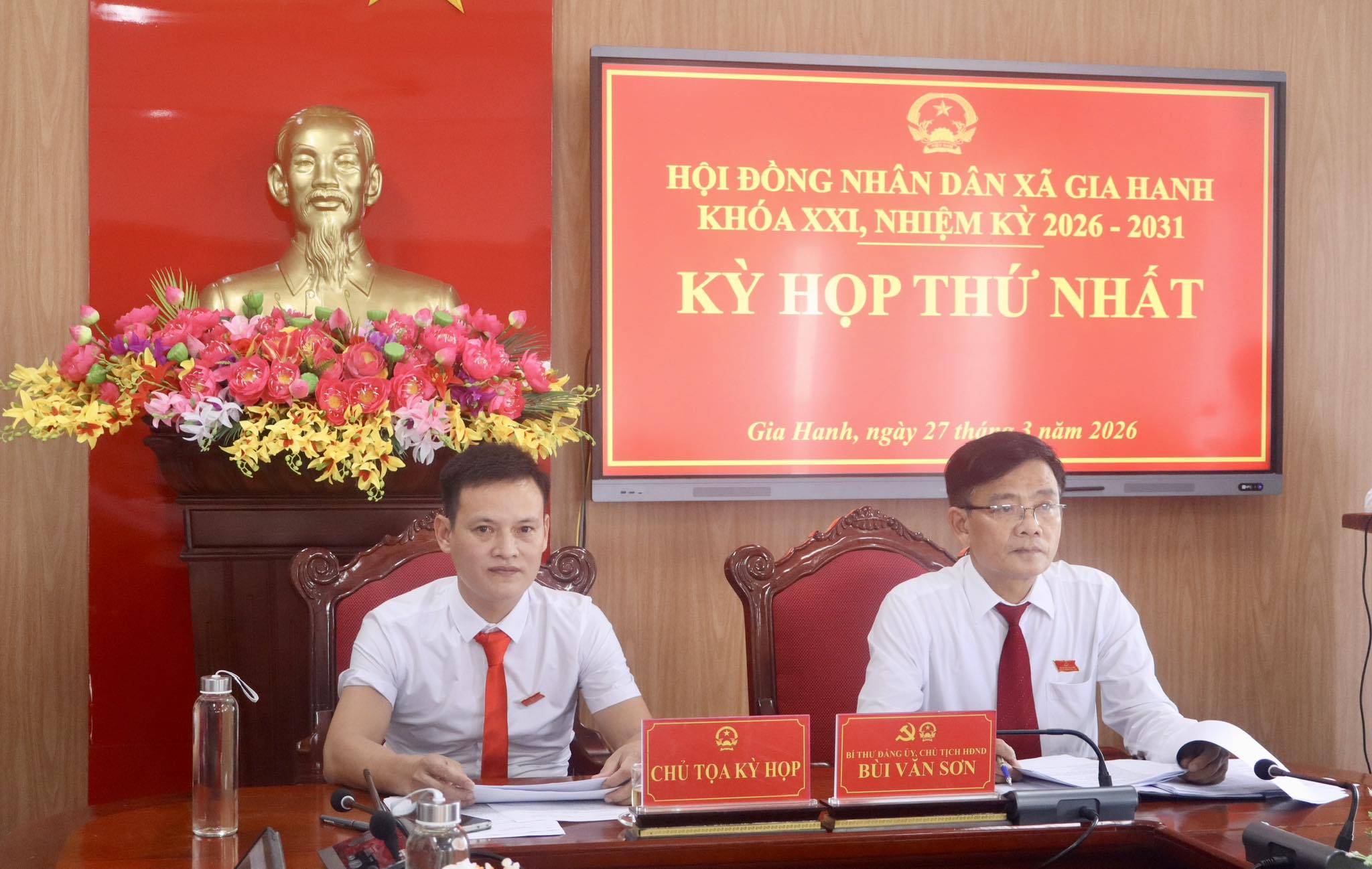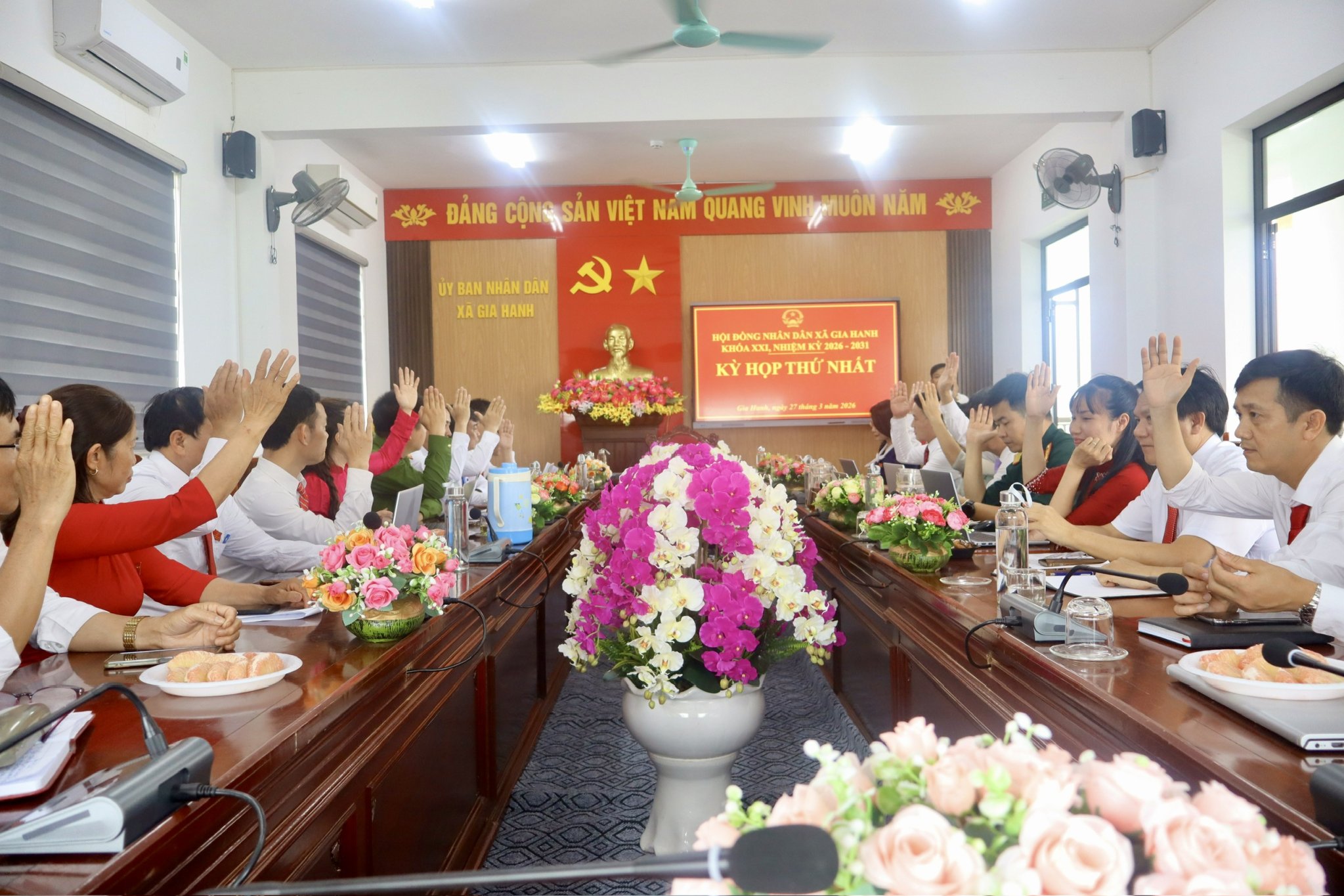 Sau thời gian làm việc khẩn trương, nghiêm túc, với tinh thần trách nhiệm cao, kỳ họp thứ nhất của HĐND xã Gia Hanh khóa XXI đã hoàn thành toàn bộ chương trình làm việc theo kế hoạch, bầu đủ các chức danh lãnh đạo chính quyền xã nhiệm kỳ 2026-2031.