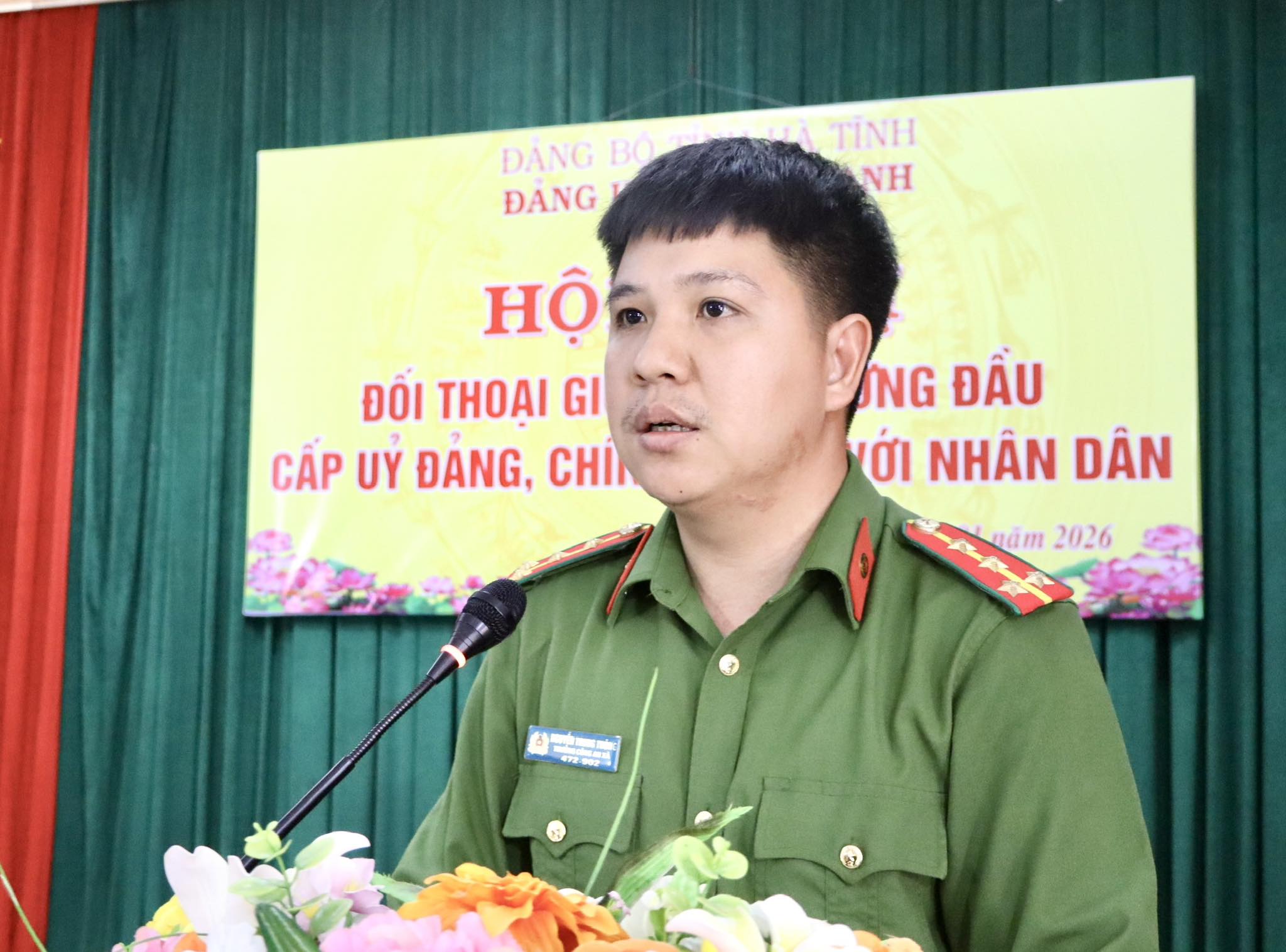 ...Đại úy Nguyễn Trung Thông - Trưởng Công an xã trực tiếp giải trình, làm rõ các phản ánh, kiến nghị của đại biểu.