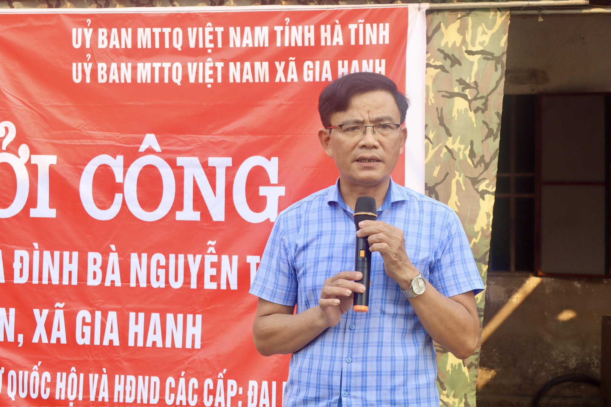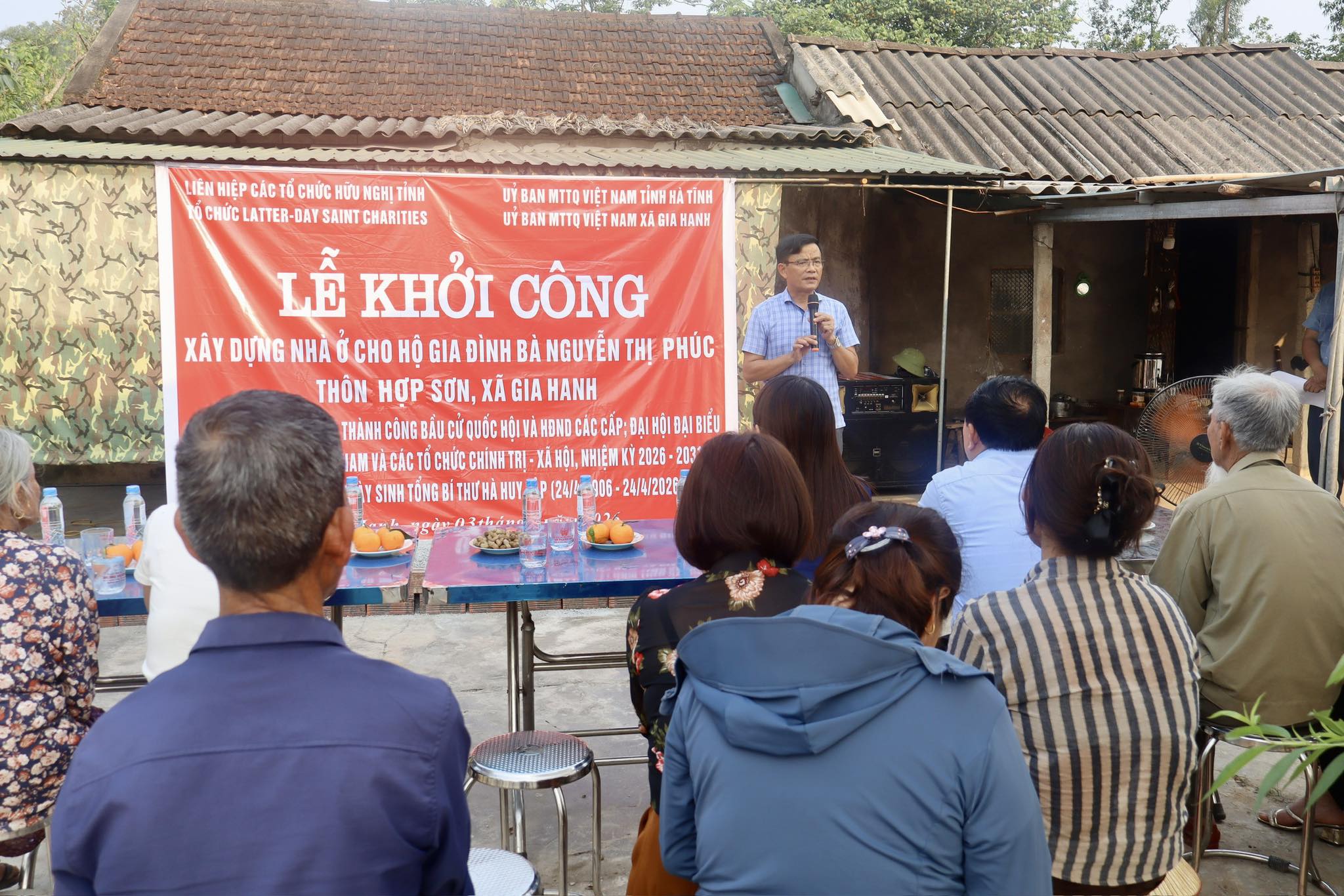 Phát biểu tại lễ khởi công, đồng chí Bùi Văn Sơn - Bí thư Đảng uỷ, Chủ tịch HĐND xã chia sẻ với hoàn cảnh khó khăn của gia đình đồng thời tin tưởng, bằng sự vượt khó của bản thân, sự giúp đỡ của các tổ chức, cá nhân, gia đình bà Nguyễn Thị Phúc sẽ vượt qua khó khăn, an cư lạc nghiệp trong ngôi nhà mới.