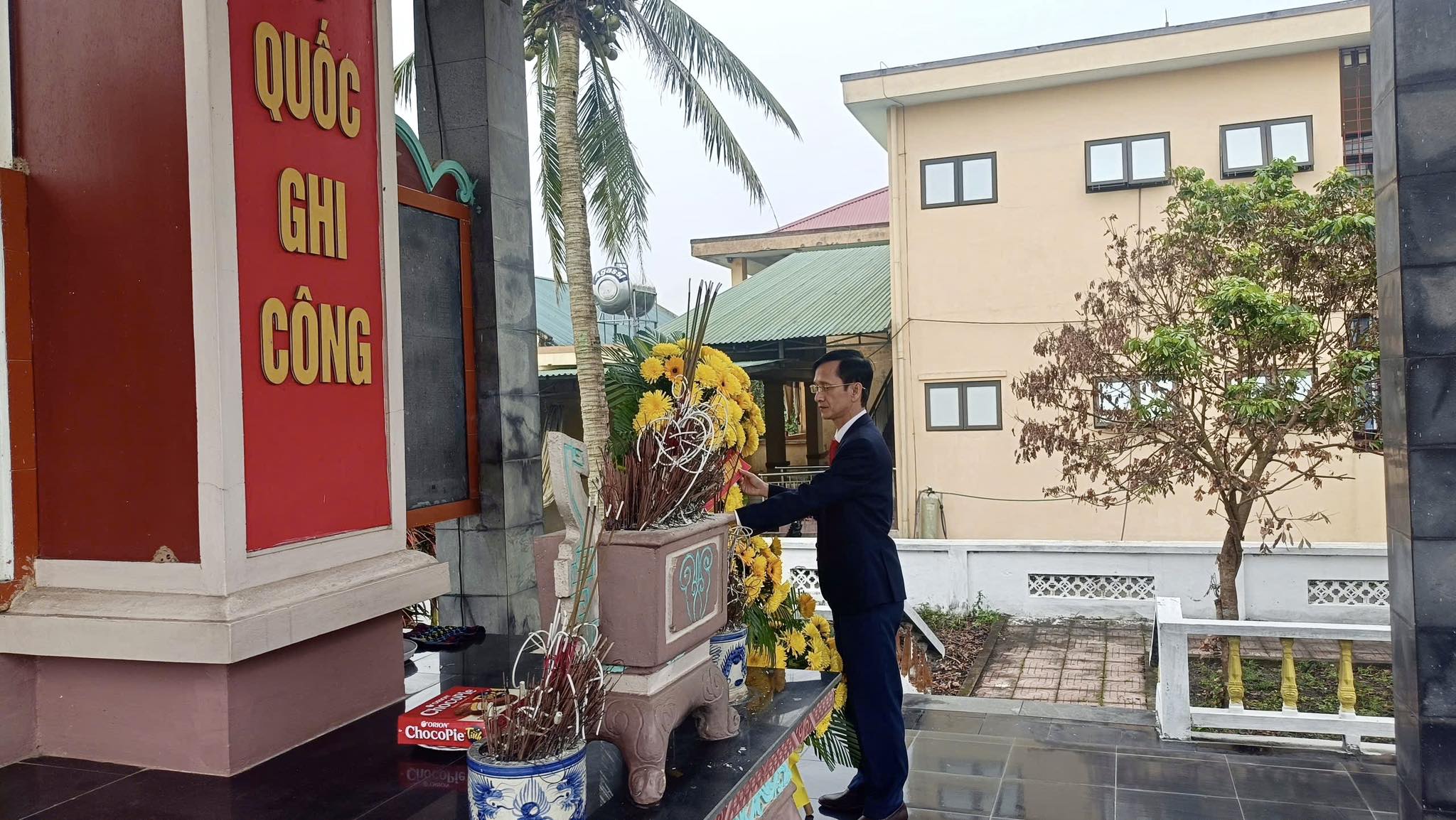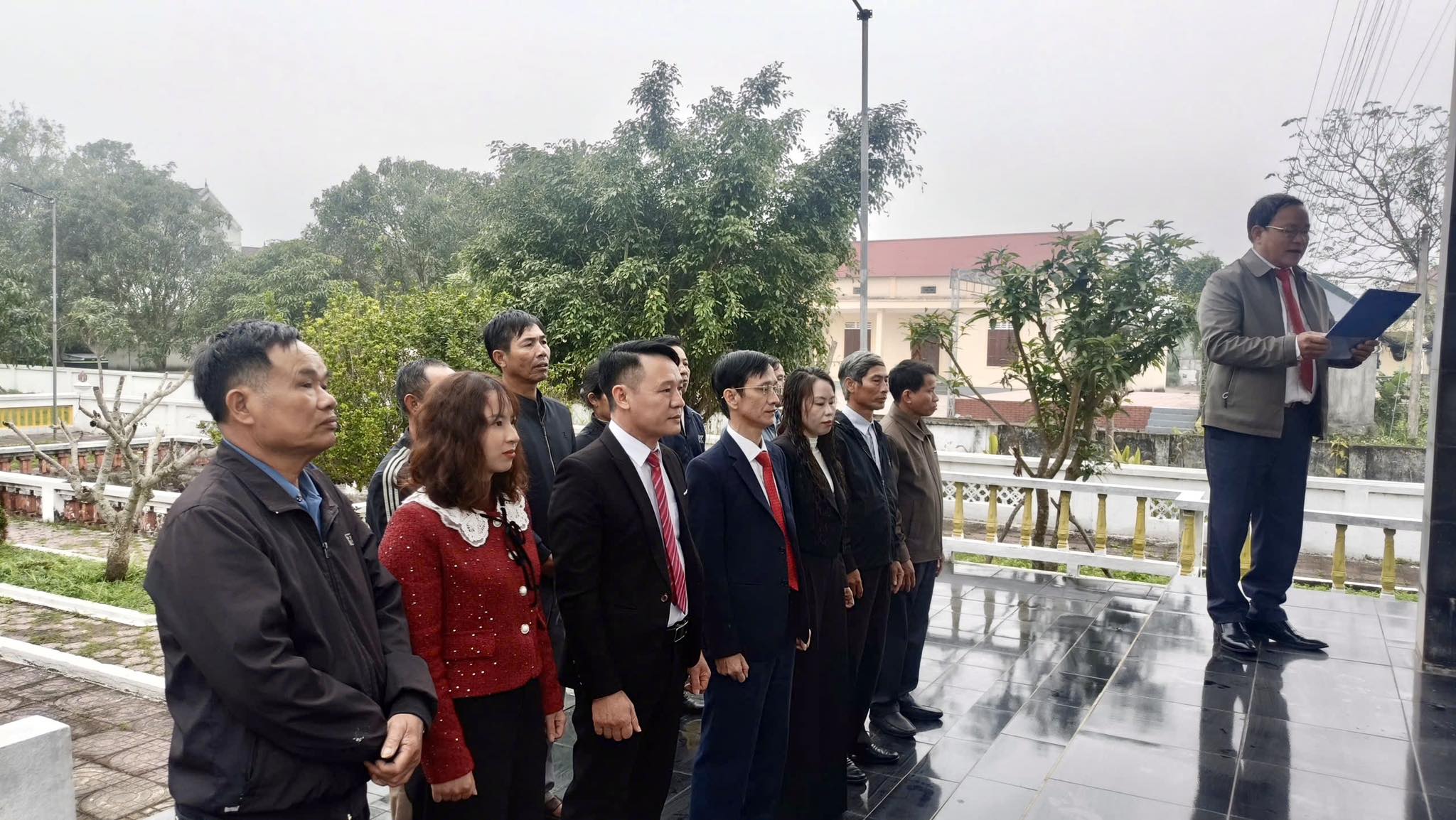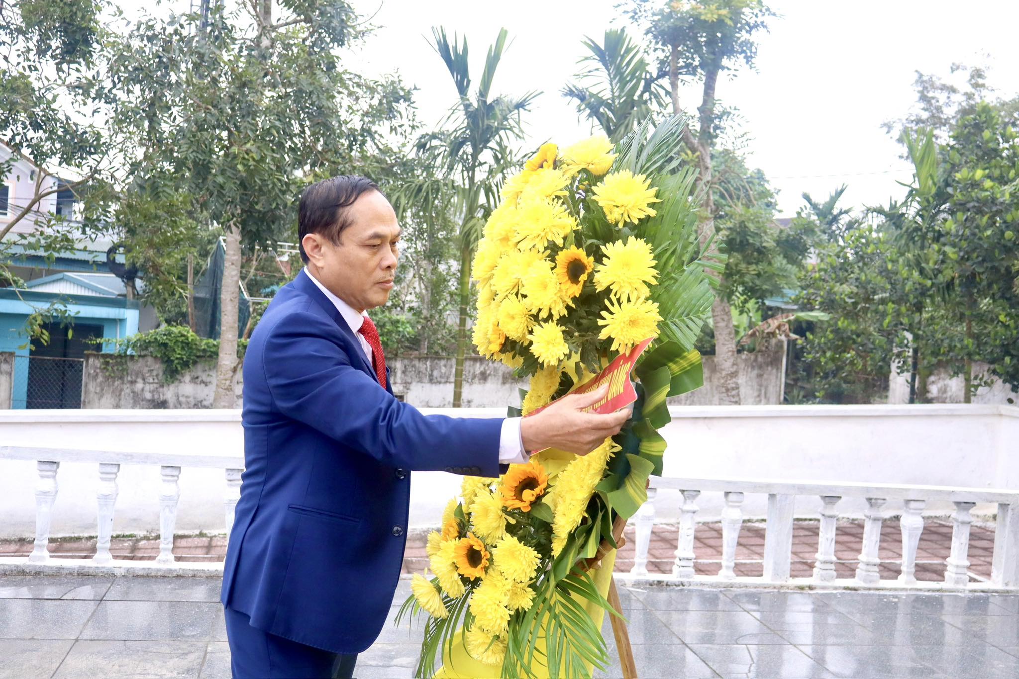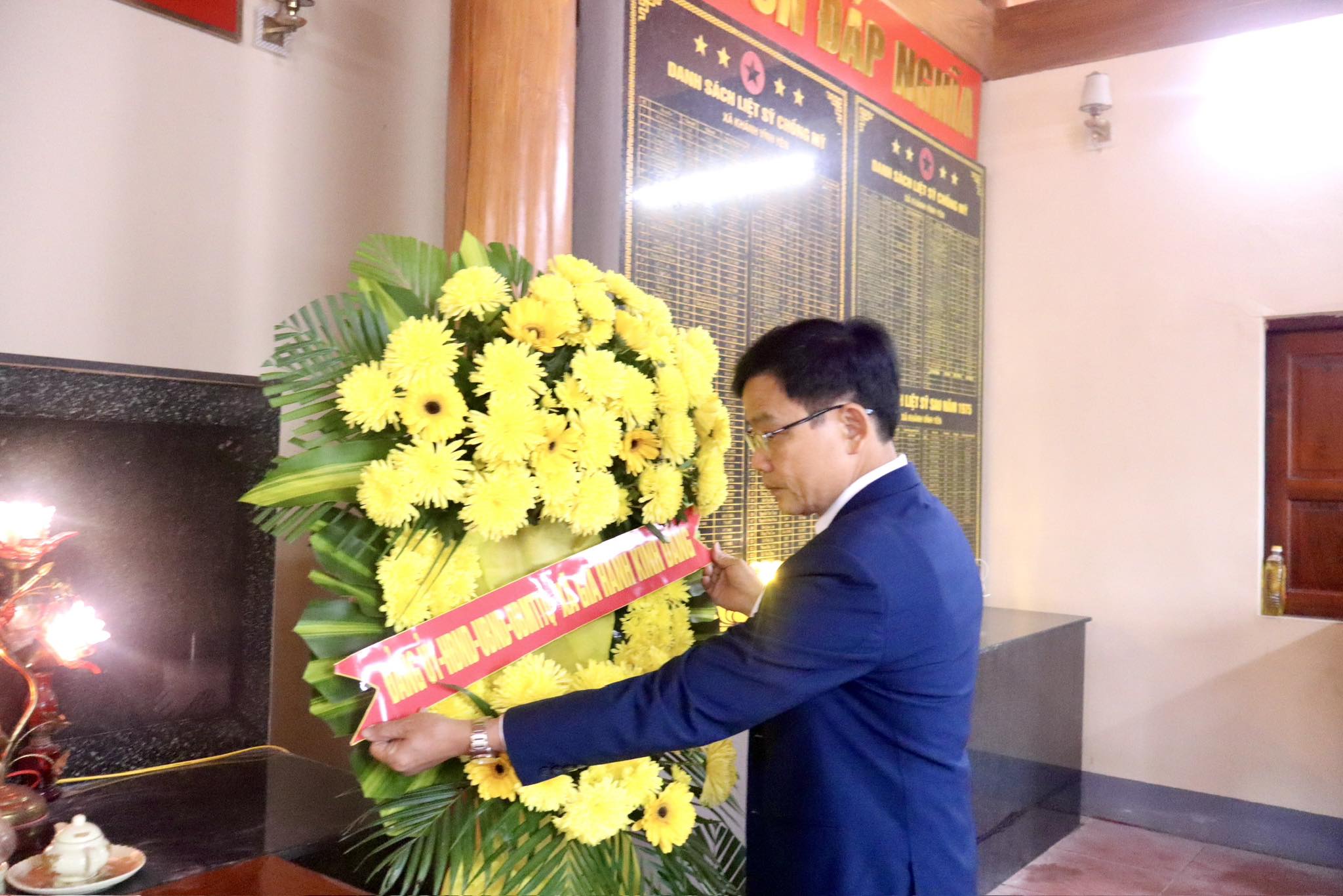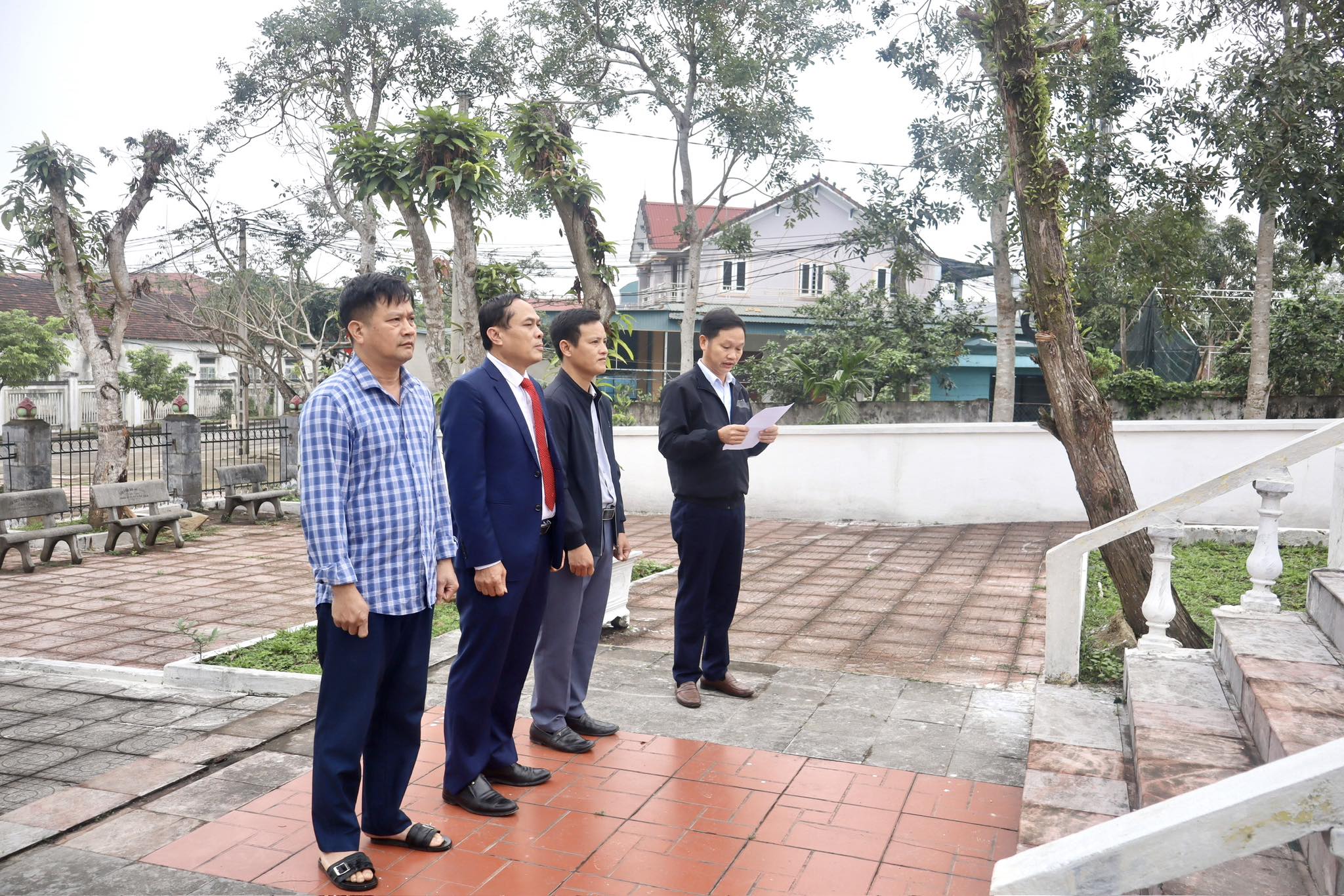 Đồng chí Nguyễn Duy Cường - Phó Bí thư Đảng ủy, Chủ tịch UBND xã và các đồng chí trong đoàn dâng hương, dâng hoa tại Tượng đài Liệt sĩ xã Gia Hanh (cũ).
