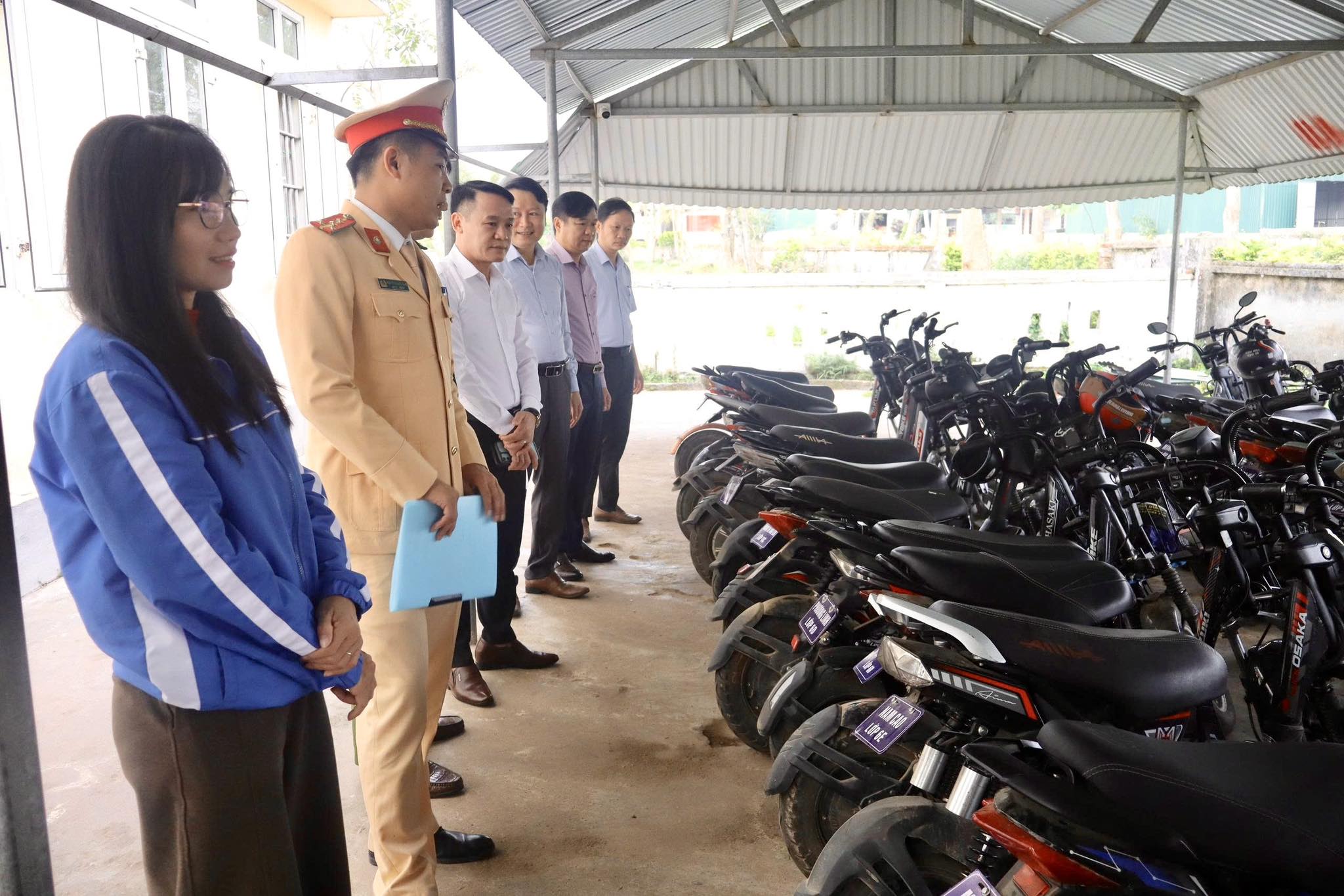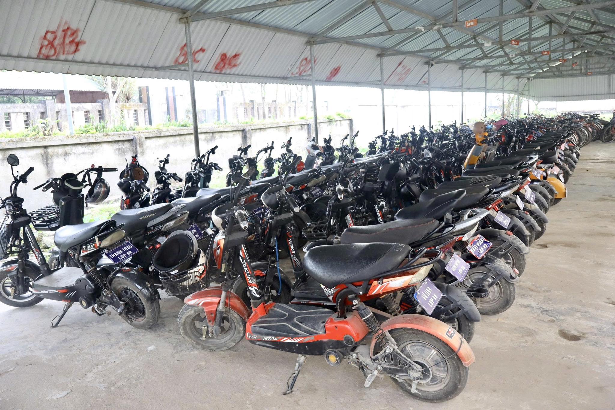 Nhà xe học sinh các khối, lớp đã được quy hoạch, bố trí, sắp xếp lại đảm bảo gọn gàng, khoa học, trang bị các thiết bị theo quy định. Đặc biệt, trên mỗi xe được gắn biển ghi thông tin họ tên học sinh, trường, lớp nhằm phục vụ công tác quản lý, kiểm soát các phương tiện.