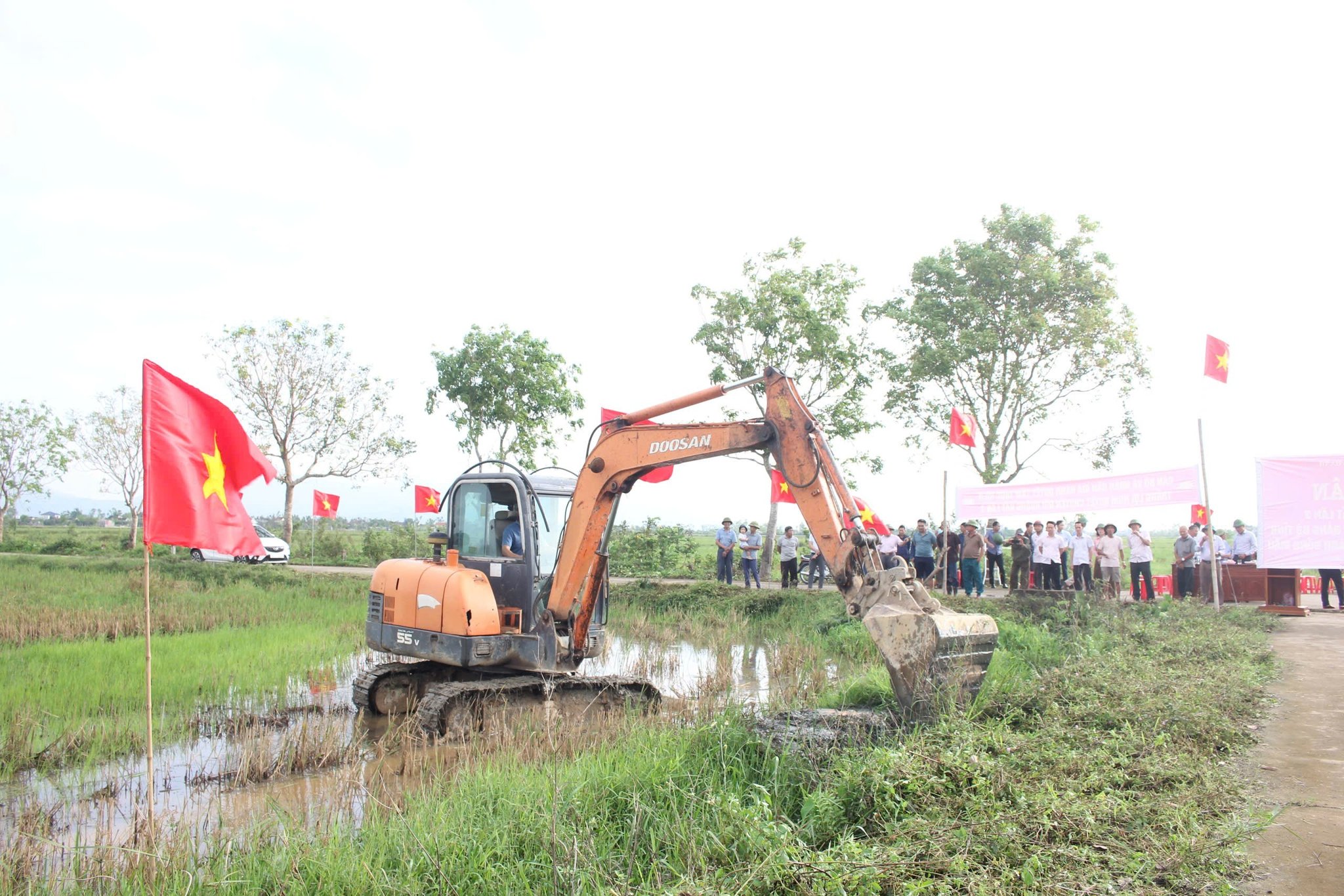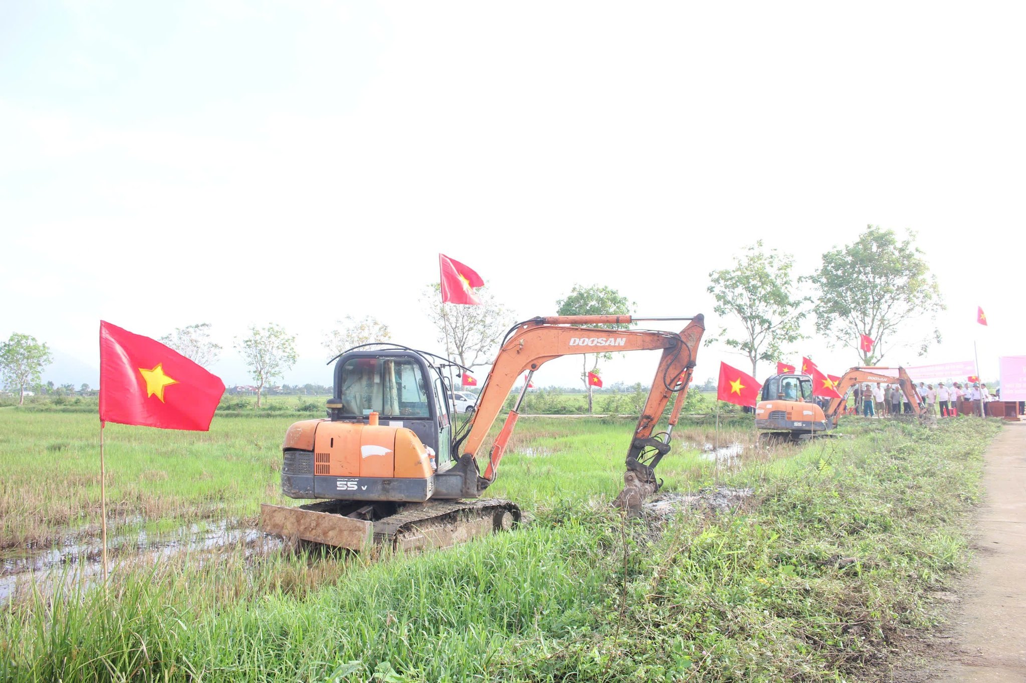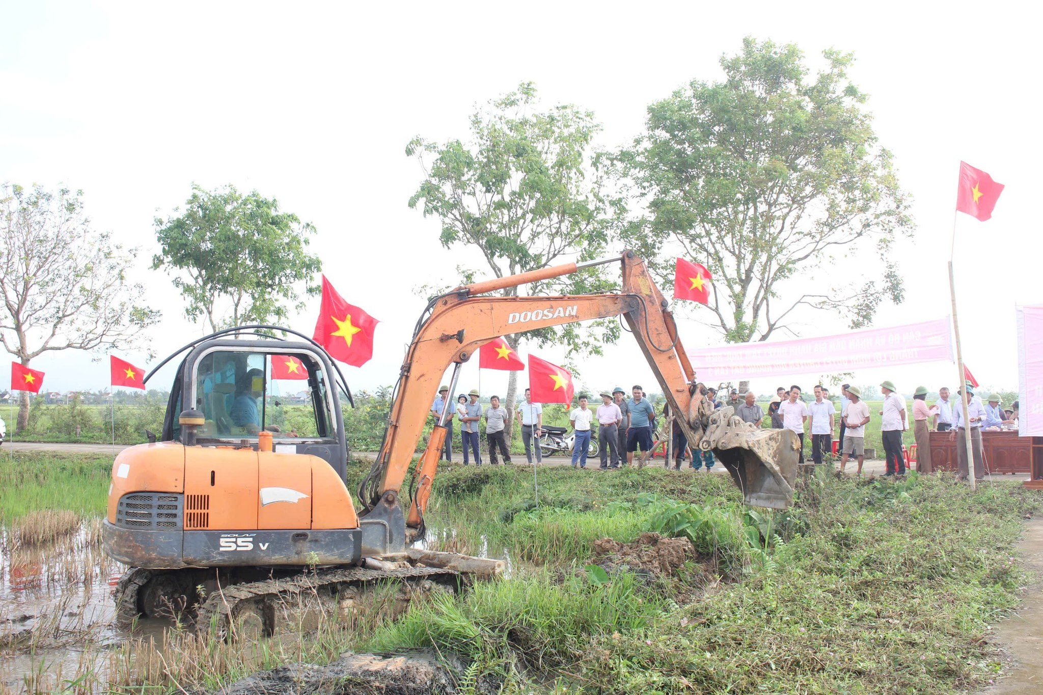 Ngay sau lễ ra quân, cấp ủy, chính quyền và bà con nhân dân thôn Quần Ngọc huy động máy móc, nhân lực tập trung triển khai phá bờ vùng, bờ thửa, đắp đường để chuyển đổi đất nông nghiệp với quyết tâm mang lại hiệu quả cao./