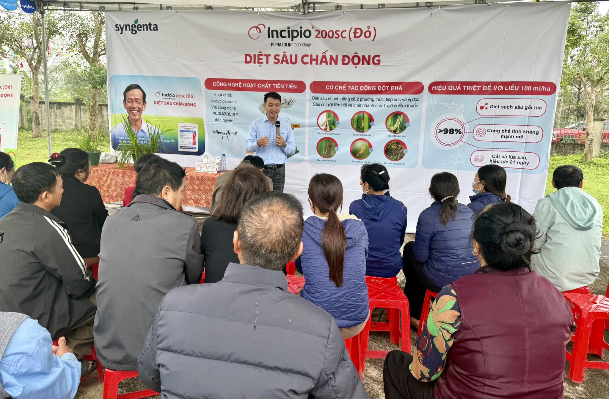 Bên cạnh đó, bà con nông dân còn được hướng dẫn sử dụng thuốc bảo vệ thực vật đúng kỹ thuật theo nguyên tắc “4 đúng” gồm: đúng thuốc, đúng nồng độ liều lượng, đúng thời điểm và đúng cách nhằm nâng cao hiệu quả phòng trừ sâu bệnh, bảo vệ năng suất lúa và giảm thiểu tác động đến môi trường.