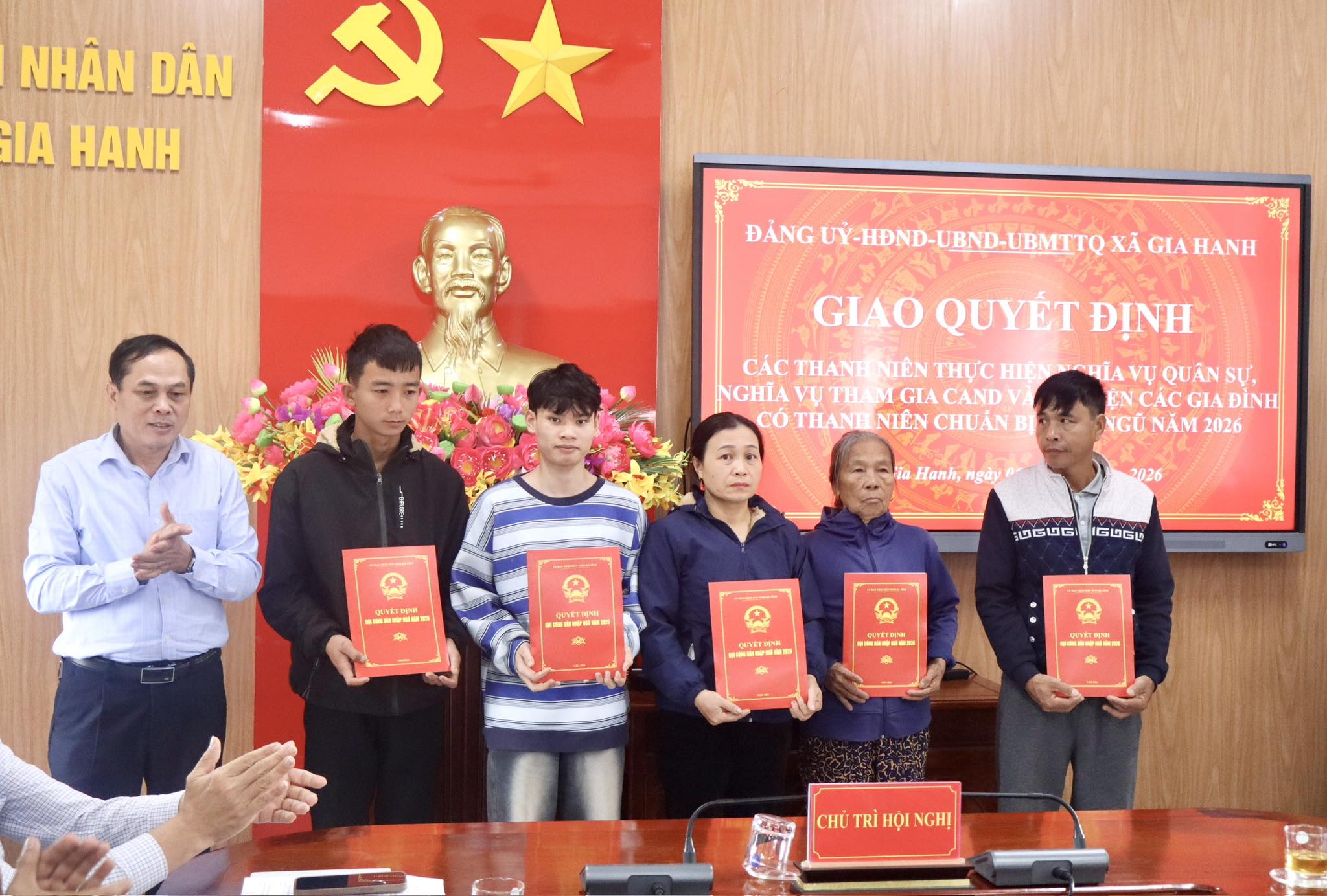 Năm 2026, xã Gia Hanh có 28 thanh niên trúng tuyển nghĩa vụ quân sự và 03 thanh niên trúng tuyển nghĩa vụ tham gia Công an nhân dân.