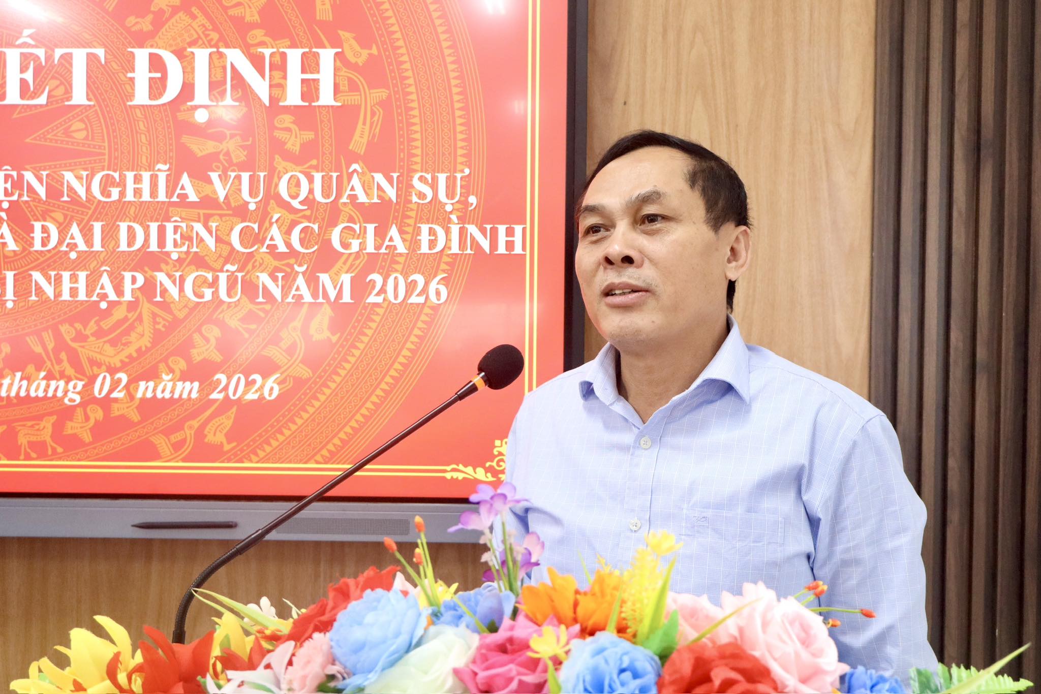 Thay mặt lãnh đạo địa phương, các đồng chí trong Thường trực Đảng ủy, HĐND, UBND xã cùng đại diện các ban, ngành, đoàn thể đã trao quyết định gọi nhập ngũ cho 31 thanh niên trúng tuyển.