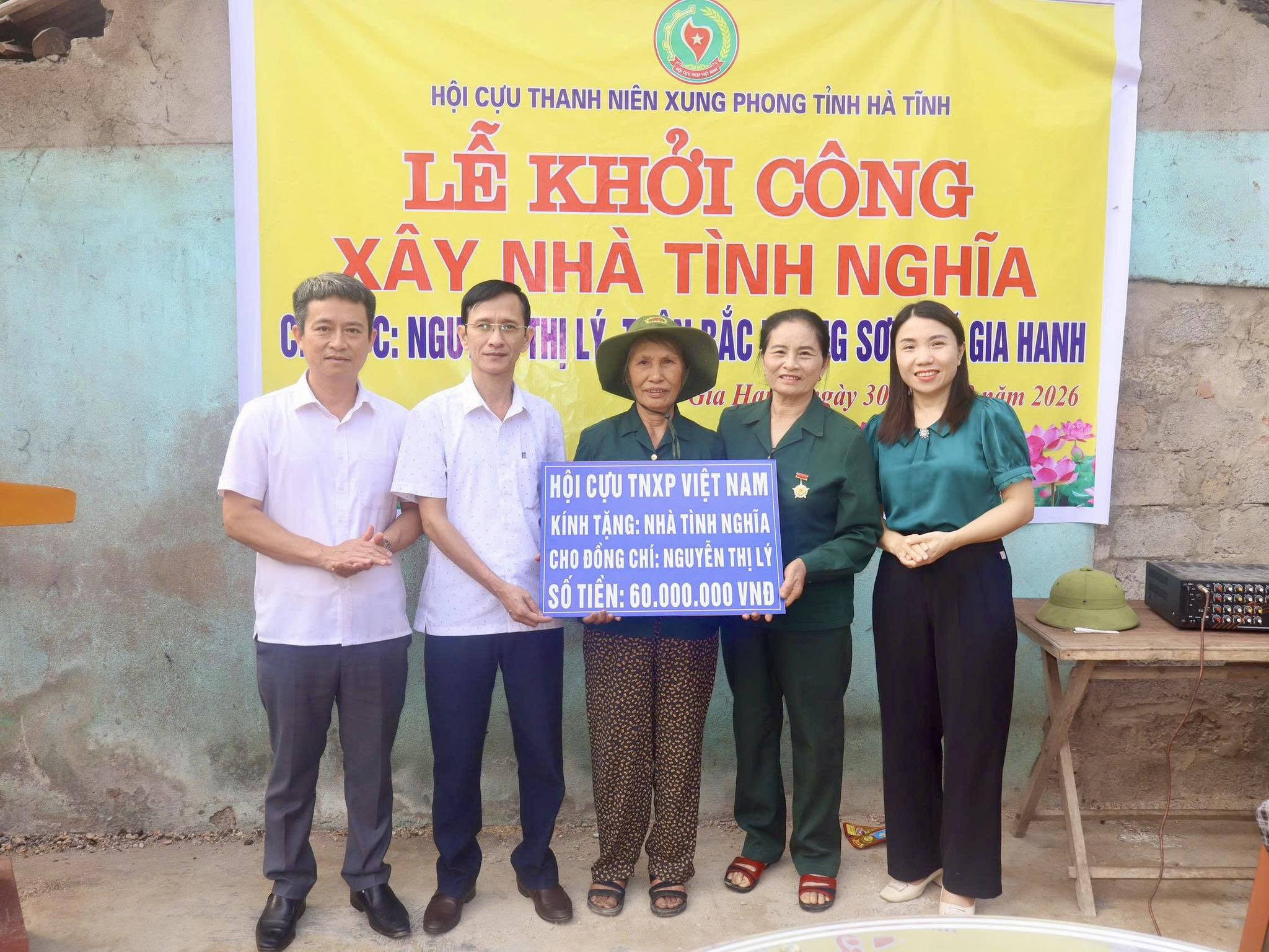 Tại lễ khởi công Hội Cựu TNXP đã trao biểu trưng hỗ trợ 60 triệu đồng từ Quỹ “ Vì nghĩa tình đồng đội” của Hội Cựu TNXP Việt Nam và số tiền ủng hộ, quyên góp của cán bộ, hội viên Hội Cựu TNXP xã Gia Hanh hỗ trợ bà Nguyễn Thị Lý làm nhà mới.