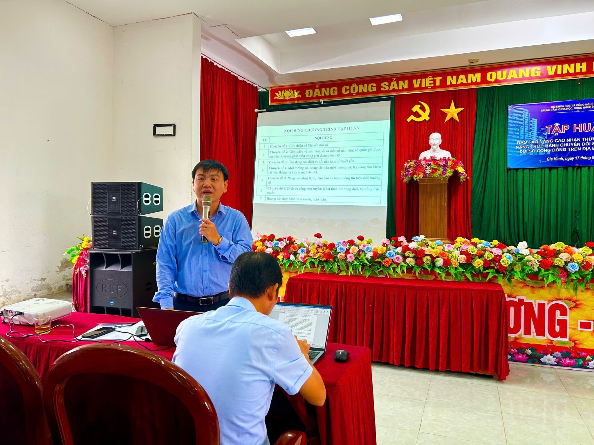Trong thời gian 1 ngày, giảng viên của Trung tâm Khoa học Công nghệ và Chuyển đổi số tỉnh đã truyền đạt 7 chuyên đề chuyển đổi số cho người dân thiết thực như: sử dụng hiệu quả dịch vụ công trực tuyến, ứng dụng khóa học công nghệ trong phát triển kinh tế hộ gia đình, bảo đảm an toàn trong chia sẻ thông tin, những điều cần lưu ý khi sử mạng xã hội….