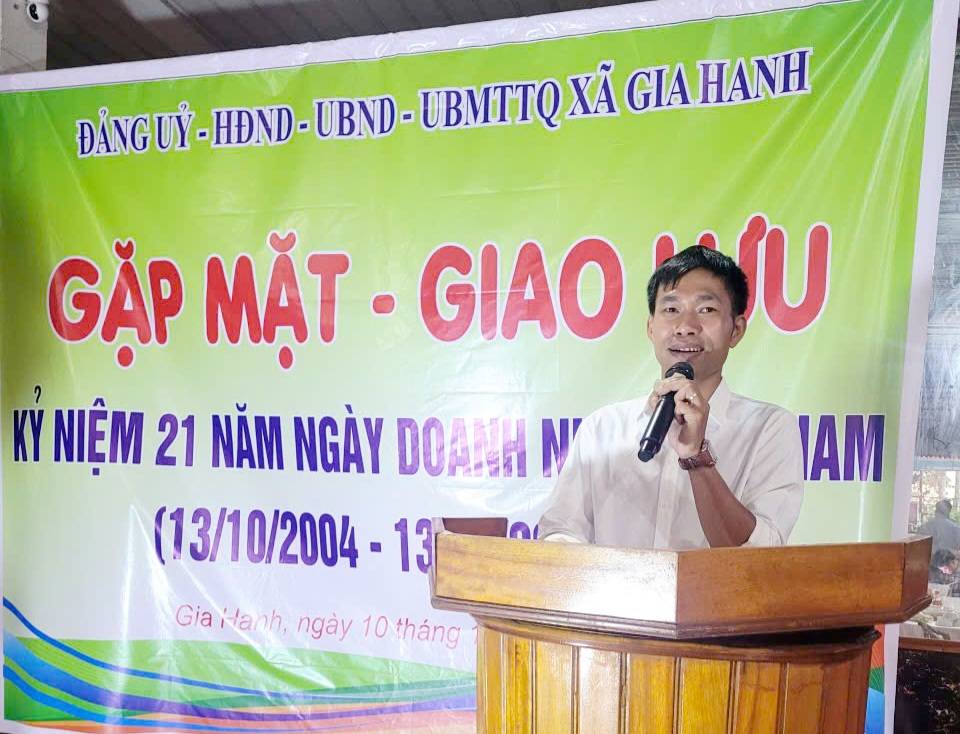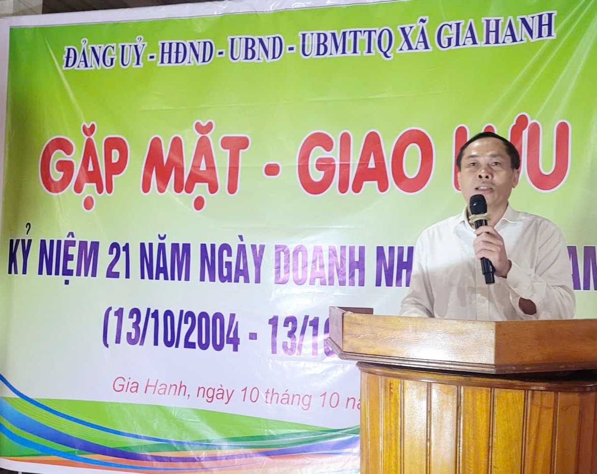 Phát biểu chúc mừng tại buổi gặp mặt, đồng chí NguyễnDuy Cường, Chủ tịch UBND xã ghi nhận, đánh giá cao những đóng góp của cộng đồng doanh nghiệp, doanh nhân trong thời gian qua. Chủ tịch UBND xã Gia Hanh đề nghị, các doanh nghiệp, doanh nhân tiếp tục nêu cao tinh thần trách nhiệm, phát huy vai trò tự lực, tự cường, đoàn kết trong cộng đồng doanh nghiệp; không ngừng học hỏi nâng cao trình độ quản lý, áp dụng khoa học kỹ thuật tiên tiến, để phát triển sản xuất, nâng cao chất lượng sản phẩm; tích cực tham gia các hoạt động xã hội, nhân đạo từ thiện trên địa bàn xã.