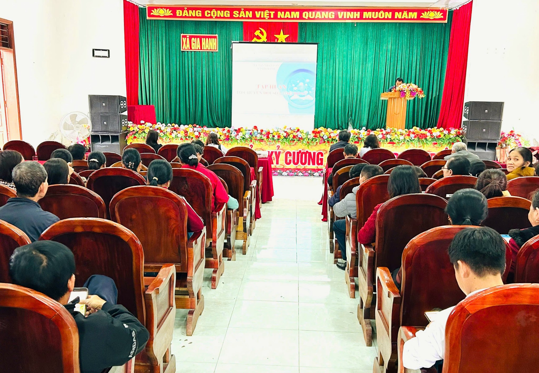 Tham dự hôi nghị tập huấn có đồng chí Nguyễn Duy Vỵ, Uỷ viên Ban Thường vụ Đảng uỷ, Phó Chủ tịch UBND xã, lãnh đạo và chuyên viên phòng Văn hóa - Xã hội, toàn thể thành viên của các Tổ chuyển đổi số cộng đồng trên địa bàn toàn xã.
