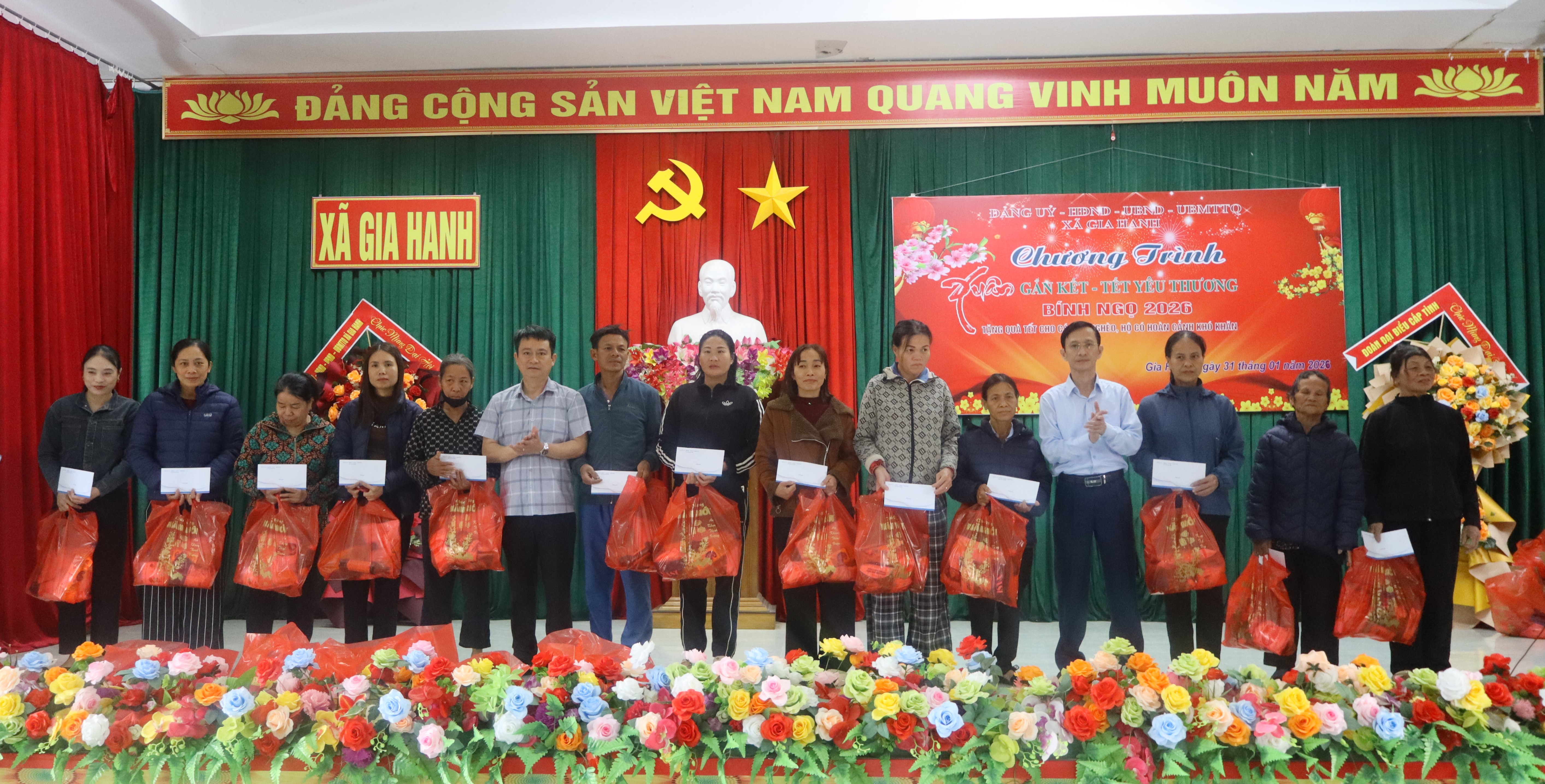 Tại chương trình, xã Gia Hanh đã trao 106 suất quà, mỗi suất gồm 500 nghìn đồng tiền mặt và nhu yếu phẩm cho các hộ nghèo trên địa bàn xã, qua đó góp phần động viên, hỗ trợ các gia đình đón Tết cổ truyền của dân tộc trong không khí đầm ấm, nghĩa tình. Nguồn kinh phí thực hiện chương trình được huy động từ Quỹ vì Người nghèo tỉnh và nguồn xã hội hóa của các đơn vị, doanh nghiệp, nhà hảo tâm.